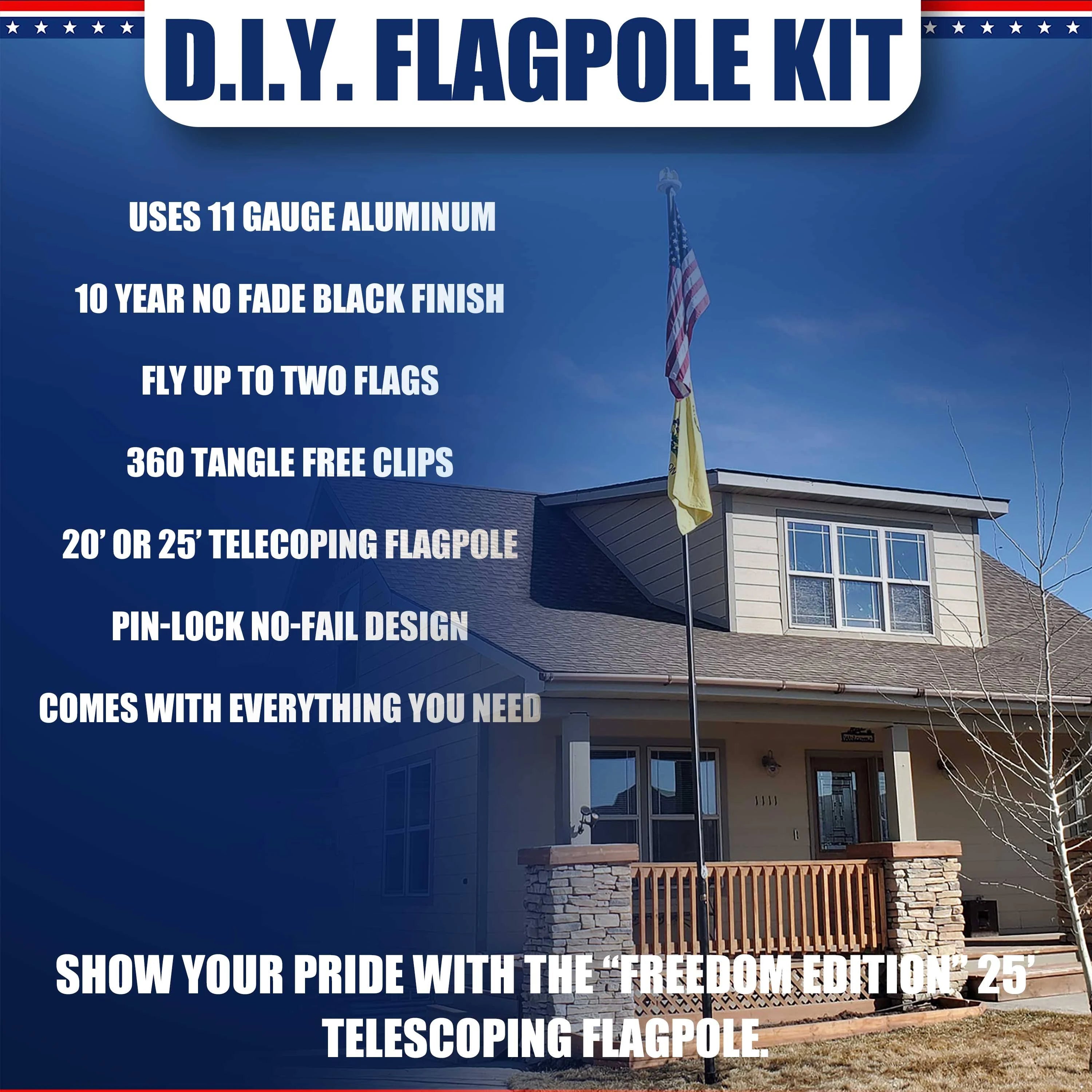 (Bundle) 20' or 25' Delta Telescoping Flagpole Bundle Freedom Edition Black (Pole, Light & Flash Collar) Bundle 25' Telescoping Flagpole Kit Freedom
