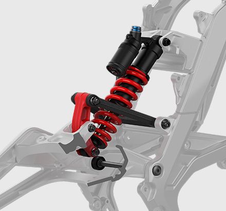 Multi-link hydraulic spring central rear suspension (TR suspension) coupled with the double-shoulder inverted front fork,  latest in-house developed suspension system is designed to make off-roading powerful yet comfortable.