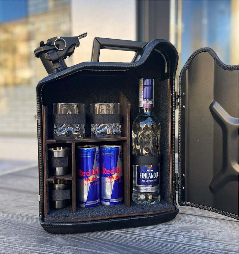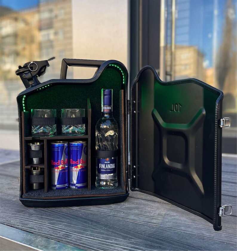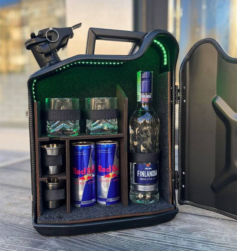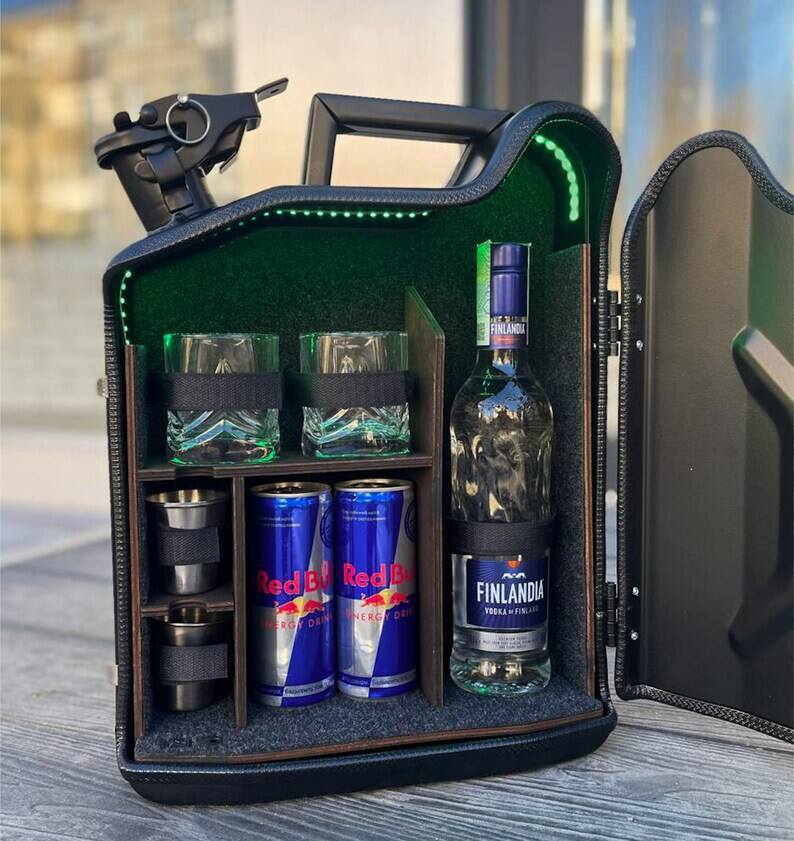 10 L Personal Jerry Can Mini Bar With Vodka Glasses and Illumination Inside, Custom Fuel Bar, Canister Mini Bar, Camping Bar, Home Bar Set
