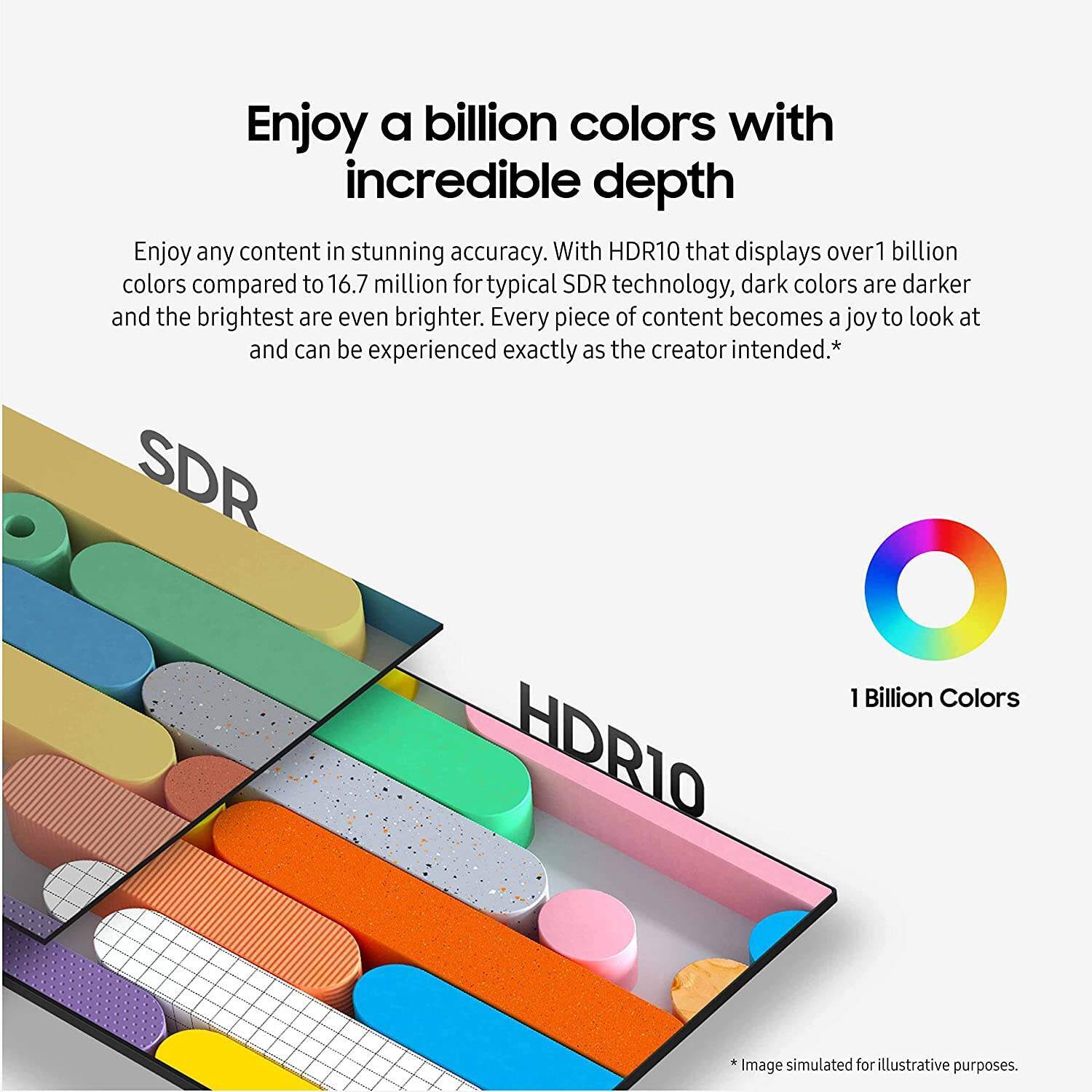 - ENJOY A BILLION COLORS W/ INCREDIBLE DEPTH: With HDR10 that displays over 1 billion colors compared to 16.7 million for typical SDR technology, dark colors are darker and the brightest are even brighter; Content is experienced as the creator intended
