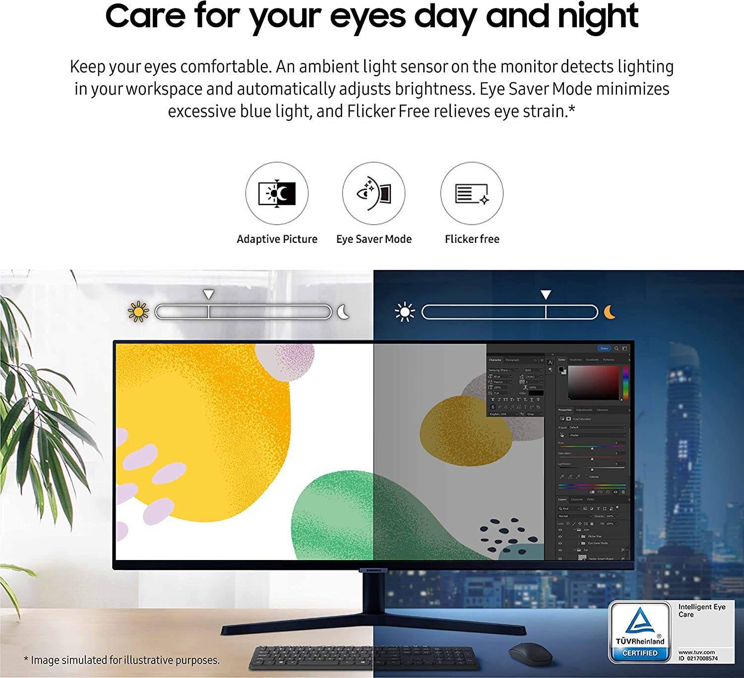 - CARE FOR YOUR EYES DAY & NIGHT: An ambient light sensor on the monitor detects lighting in your workstation and automatically adjusts brightness; Eye Saver Mode minimizes excessive blue light, and Flicker Free relieves eye strain