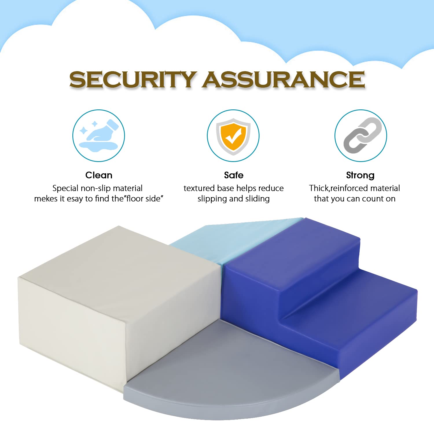 - u2606u3010EASY to MAINTAINu3011-The corner climber for babies is resistant to stains and wear, thanks to toddler climbingu2019s easy to clean vinyl surface, which can be wiped clean with a wet cloth. A simple cleaning can get a clean, soft play equipment.