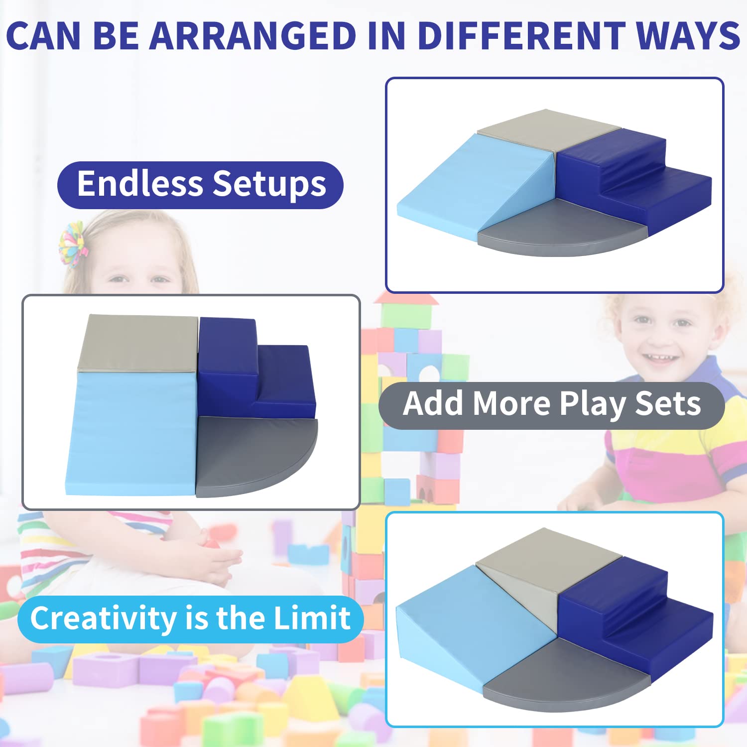 - u2605u3010Widly Applicationsu3011The EPE cotton filled inside the children's block play set is lightweight and stackable, it doesn't take up too much space and is easy to move around. This soft foam climber can be placed in the corner of the room to provide extra support for young children who are learning to balance, crawl and climb.