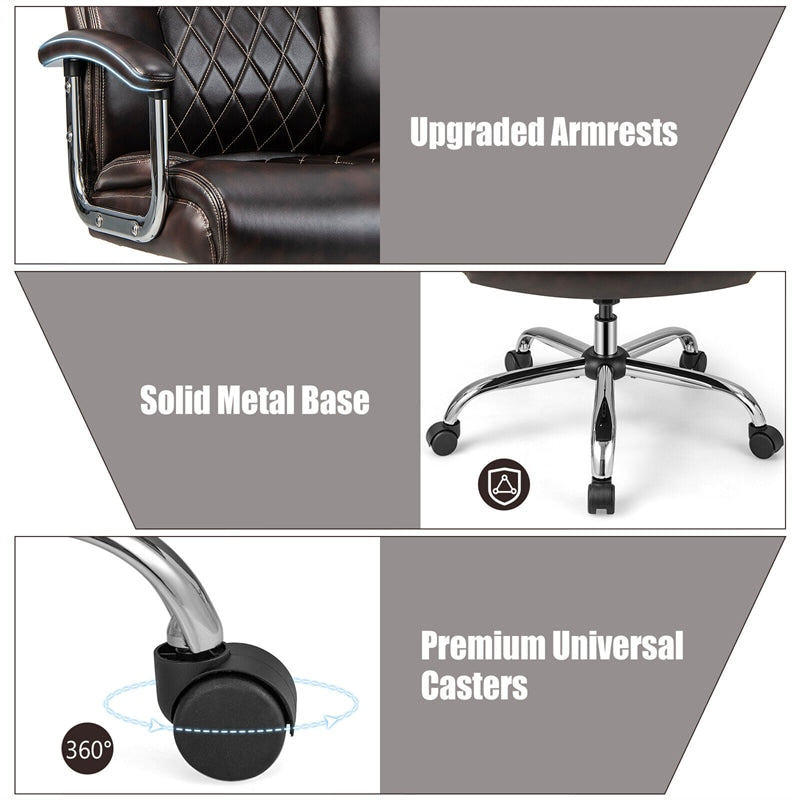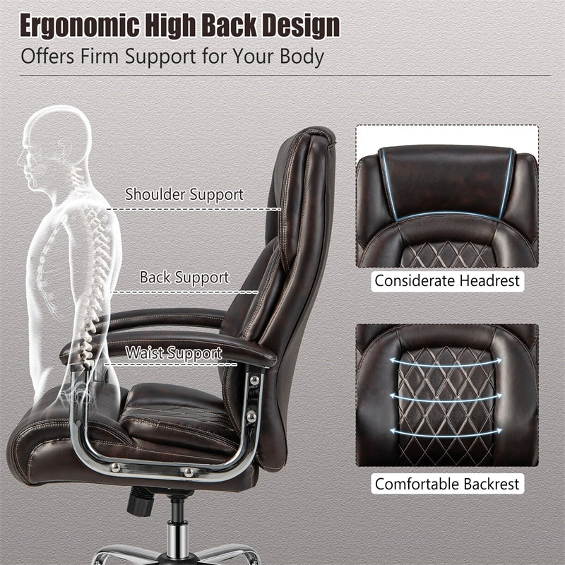 500lbs Height Adjustable Office Chair Swivel Computer Task Desk Chair Leather Executive Chair with Heavy Duty Metal Base