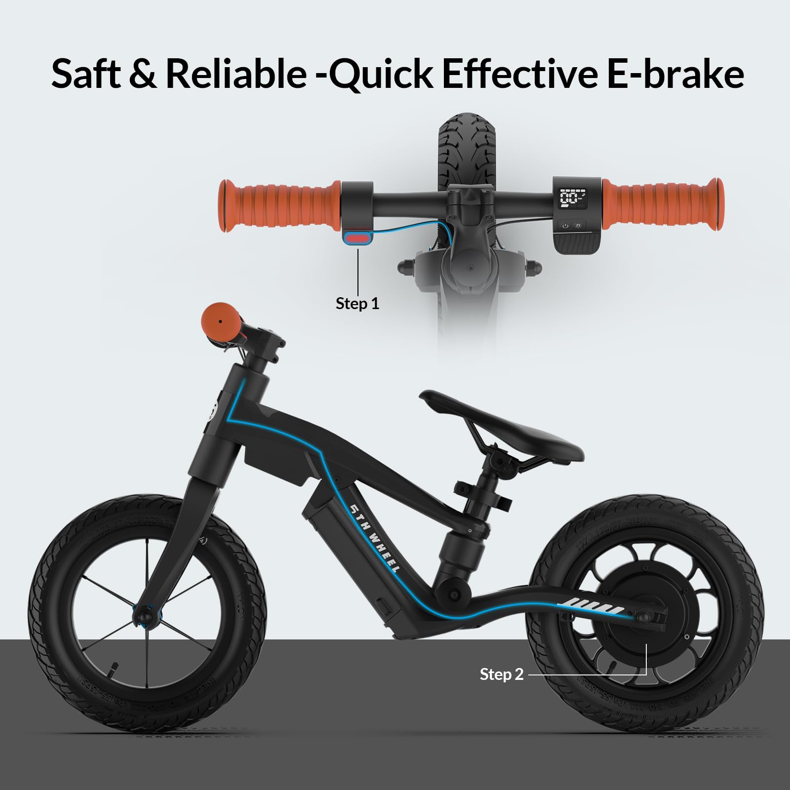 - Safe and Simple Riding: Safety is essential with the kids electric balance bike. The K8 is equipped with a reliable e-brake system that achieves efficient and responsive braking. Simply press the left brake to stop. The bike also features a sliding assist to start throttle, preventing accidental starts and ensuring safer rides. The suitable seat height enables kids to stop the kid bike with their feet.
