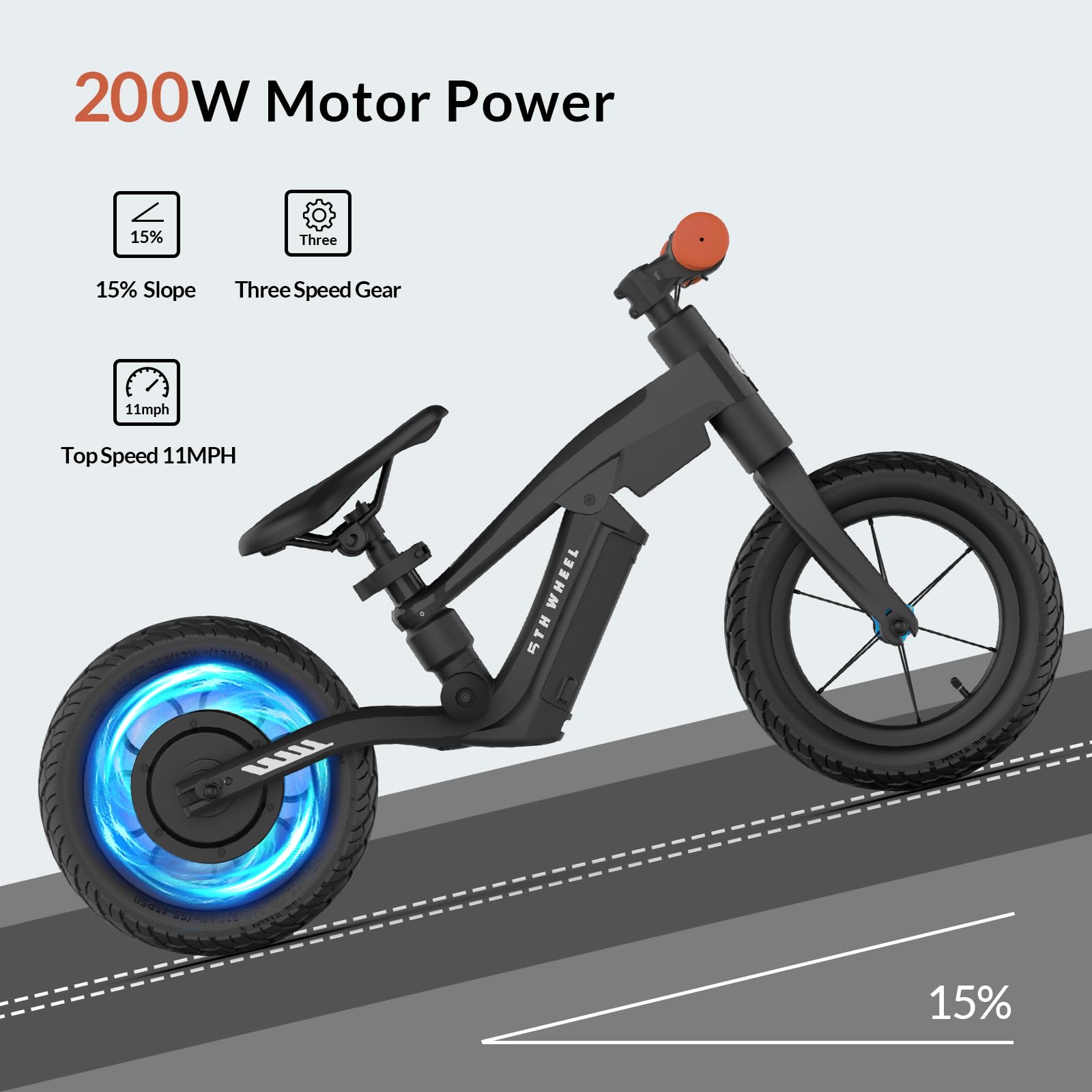 - Long-Lasting Battery: The electric bike for kids comes with a removable 22.2V 2.5Ah battery, which supports to charges the bike directly or can be removed and charged independently. Powered by a 200W motor, it reaches speeds of up to 11mph and covers a range of 7.5 miles on a full charge. When your child prefers a non-elecric balance bike experience, simply remove the battery.