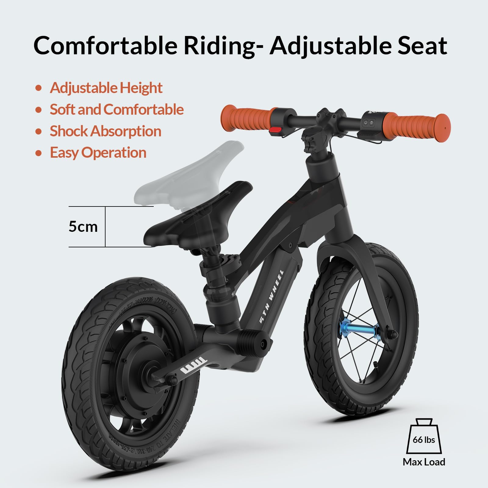 - Comfortable Riding: K8 kid electric bicycle features an adjustable, soft seat tailored to your child's height. As kids grow quickly, the K8's adaptable seat ensures ergonomic seating during their riding. Equipped with 12-inch air-filled tires, the K8 provide a comfortable ride on ground, dirt, and grassu2014ensuring smooth explorations.