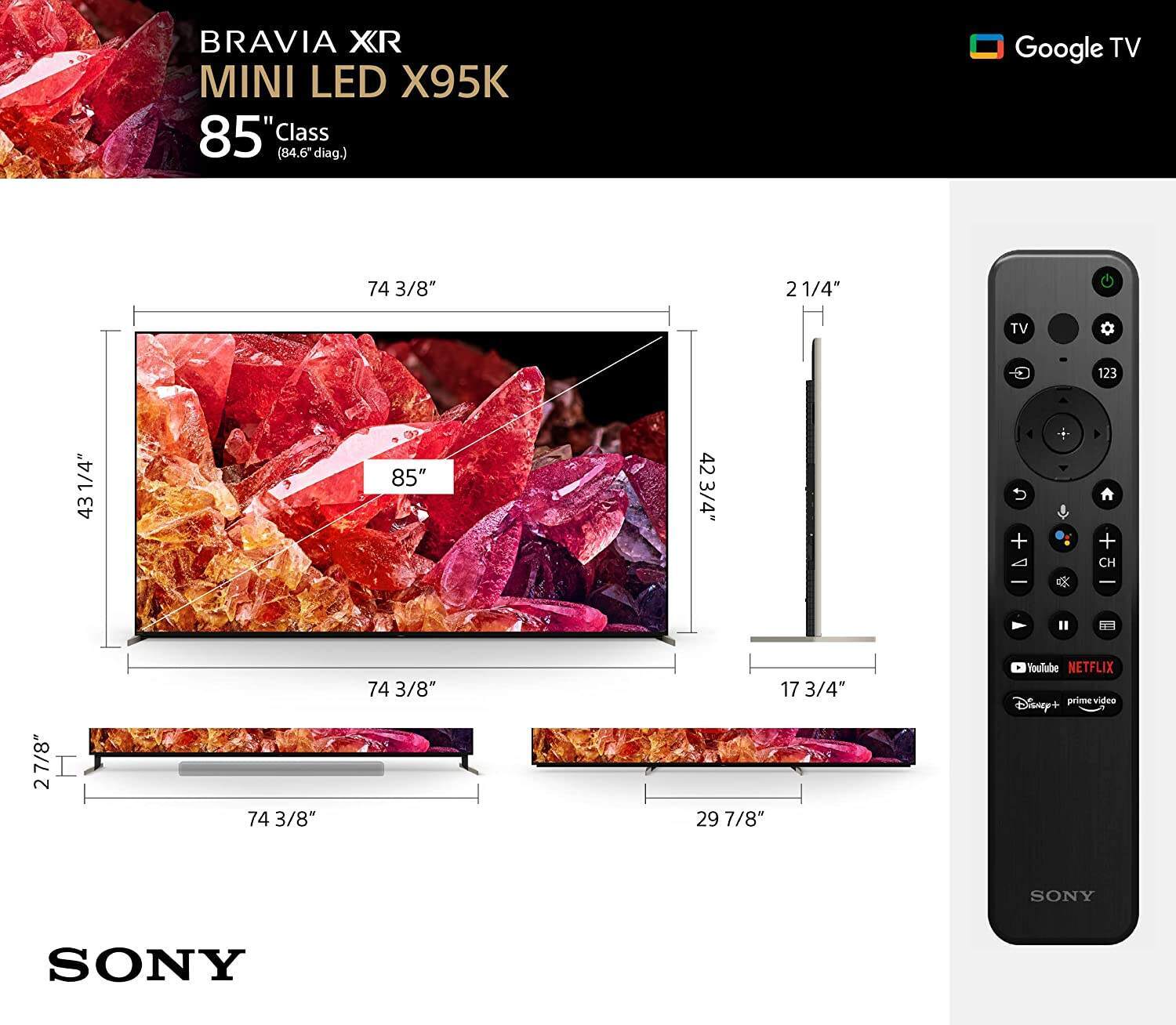 85 Inch 4K Ultra HD TV X95K Series: BRAVIA XR Mini LED Smart Google TV with Dolby Vision HDR and Exclusive Features for The Playstation® 5 XR85X95K- 2022 Model