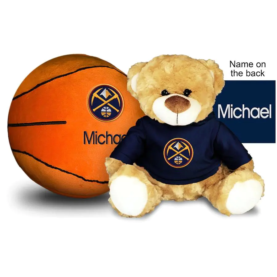 Denver Nuggets 10'' Personalized Plush Bear & Basketball Set - Navy