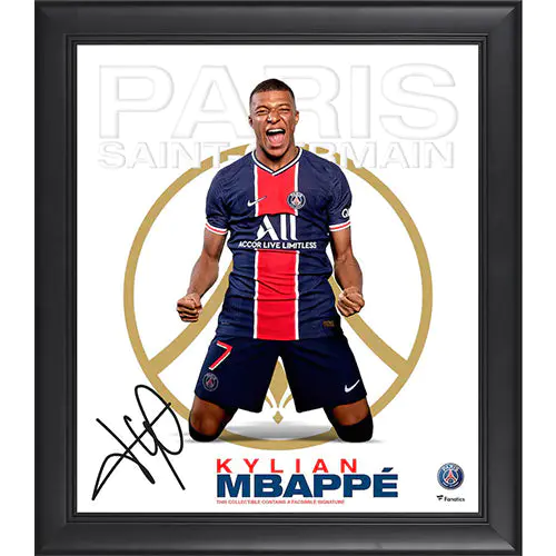 Kylian Mbappe Paris Saint-Germain football team themed autograph framed collage