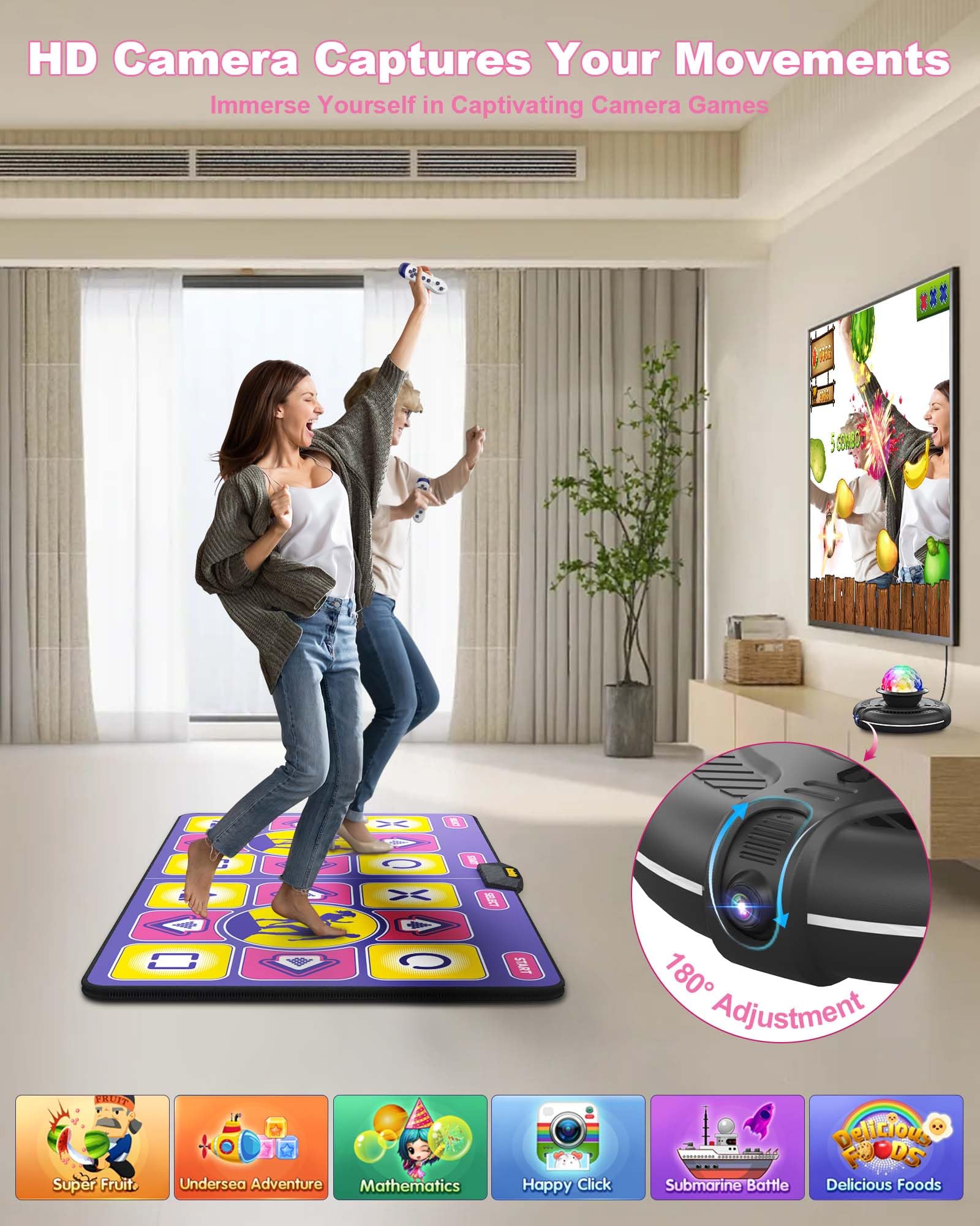 - ud83cudfaeu3010DIVERSE GAME MODES FOR EVERY AGEu3011Acelufly versatile dance mat - where every age meets endless fun! Our dance mat offers a variety of engaging games suitable for all ages. Enjoy the challenge of different dance styles, songs, and difficulties. Experience the classic camera game Fruit Ninja as well as exciting Undersea Adventures. From retro favorites like Super Mario, mind-teasing puzzle games to sports games, our mat has it all.