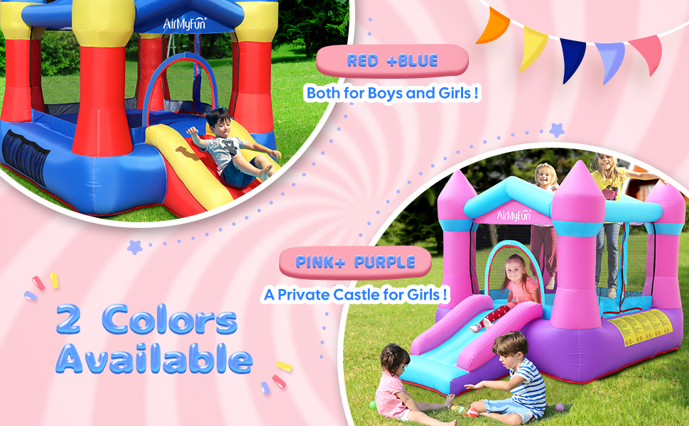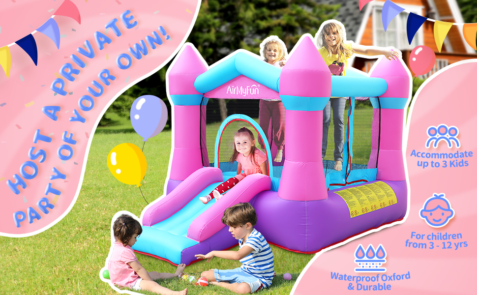 - [High-Quality Materials] AirMyFun Jumper House is made of high-quality Oxford materials, adpoted particularly durable 840D+420D tarpaulin material, choose quality durable, puncture-resistant synthetic fabric. You can play any games on the bouncing house peace of mind. It is a funny brouncy castle for children that parents can trust.