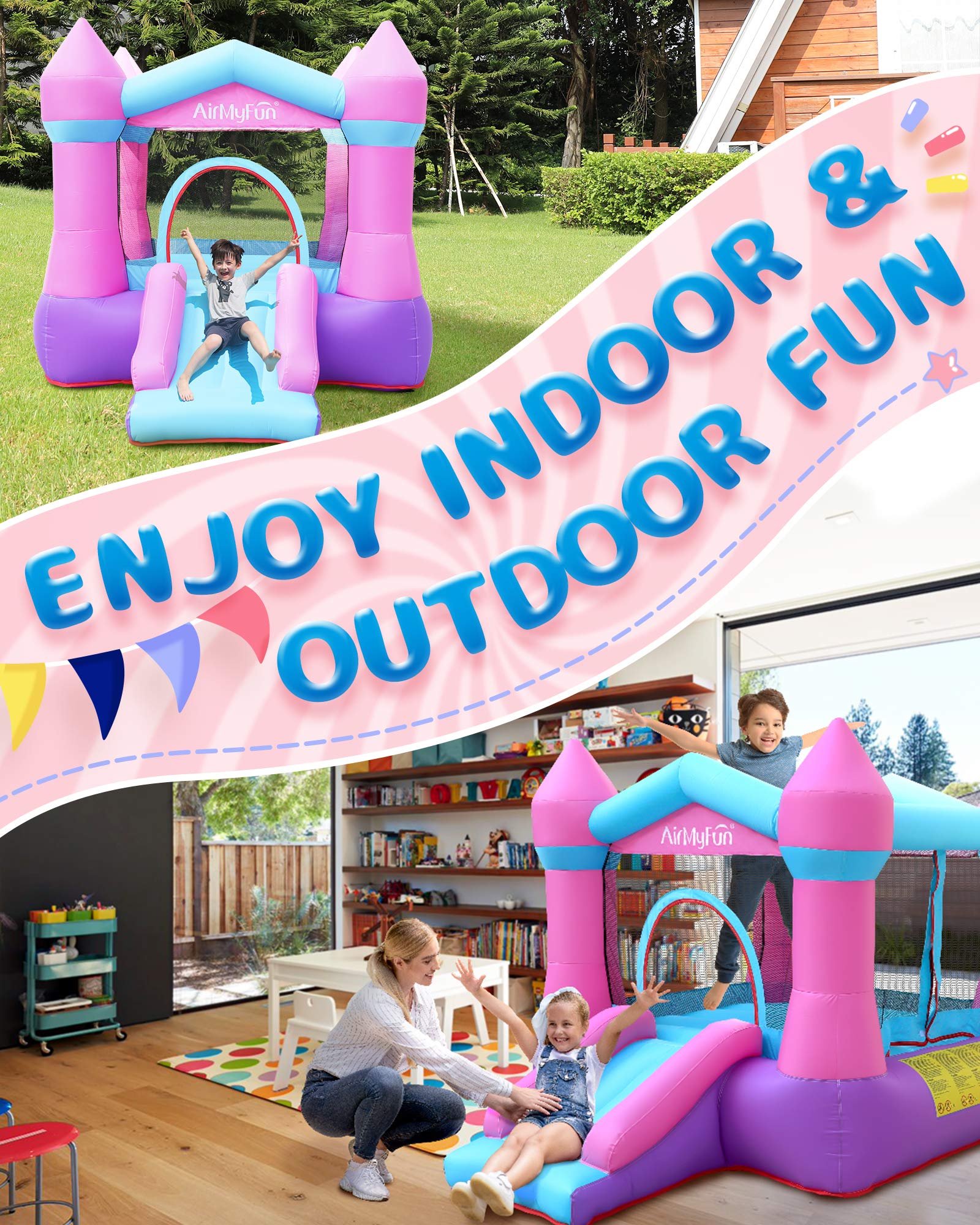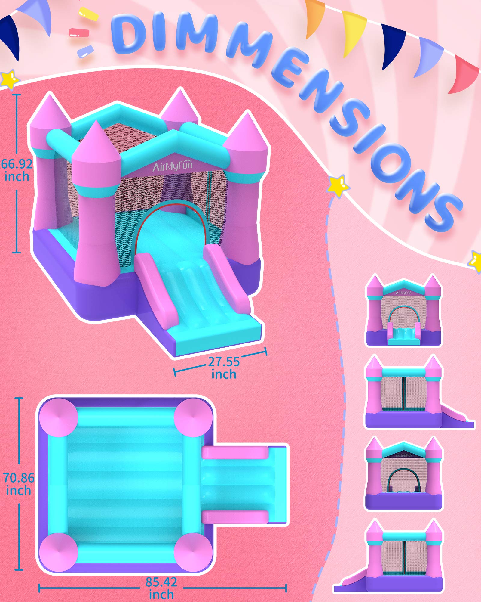 - [High-Quality Materials] AirMyFun Jumper House is made of high-quality Oxford materials, adpoted particularly durable 840D+420D tarpaulin material, choose quality durable, puncture-resistant synthetic fabric. You can play any games on the bouncing house peace of mind. It is a funny brouncy castle for children that parents can trust.