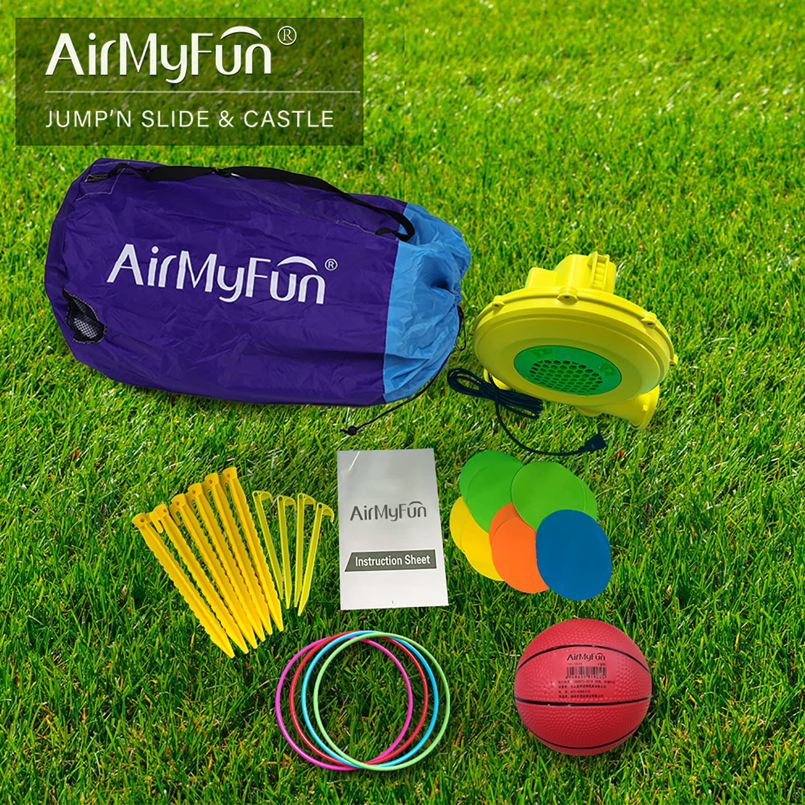 - Perfect accessory kit: Each item is equipped with a 450W air blower, carry bag, some repair patches and lawn stakes. All accessories are prepared for you, saving time to go to store.