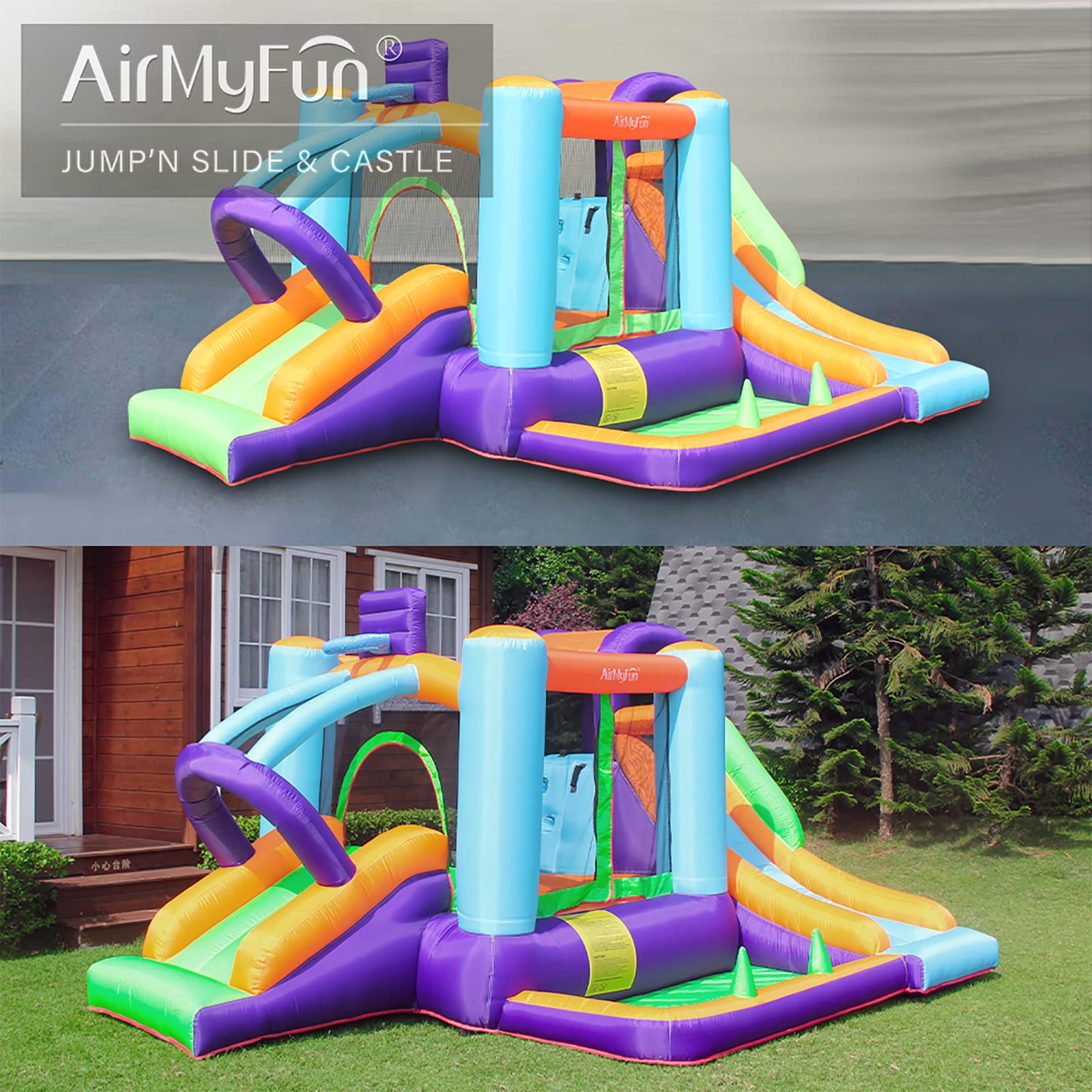 - Safe for kids: The large jump area is surrounded by 3 sides of mesh which high enough to prevent from dropping on the ground, and the rails on both sides of the slide to prevent from sliding outside.
