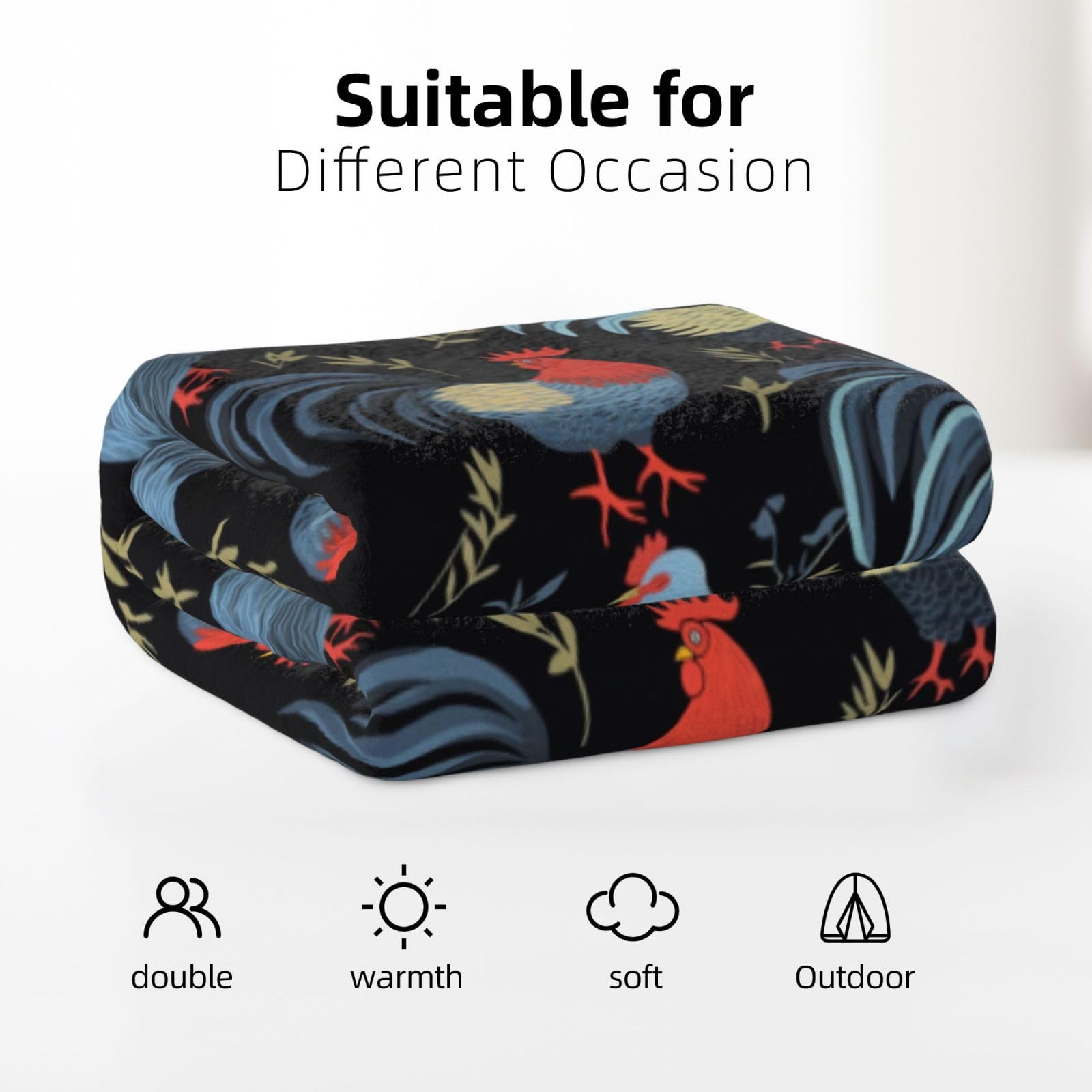 - Multi functional & durable - This Colorful Rooster blanket is funny, Your baby or little one will love petting, snuggling, and interacting with it,The plush blankets can be used indoors or outdoors as a bed blanket, chair blanket, sofa blanket, camping blanket, cooling blanket, baby blanket, swaddle blanket, beach blanket. Due to the anti-pilling, anti-wrinkle quality,warm chicken blanket can be used as a cover to prevent the stain or dust for a long time durability.