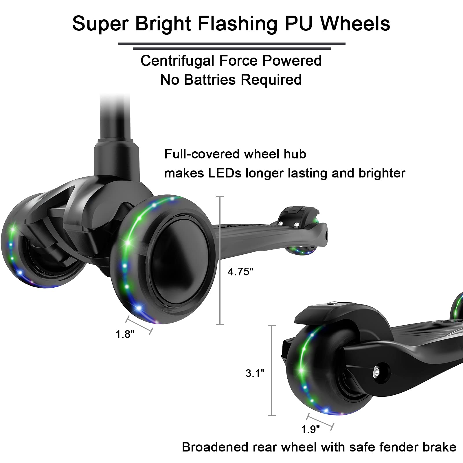 - SUPER BRIGHT WHEELS u2013 Large and extra wide wheels light up and flicker with the crease of rolling speed while gliding on the road. LEDs inside the wheels are operated by centrifugal force without any batteries required.