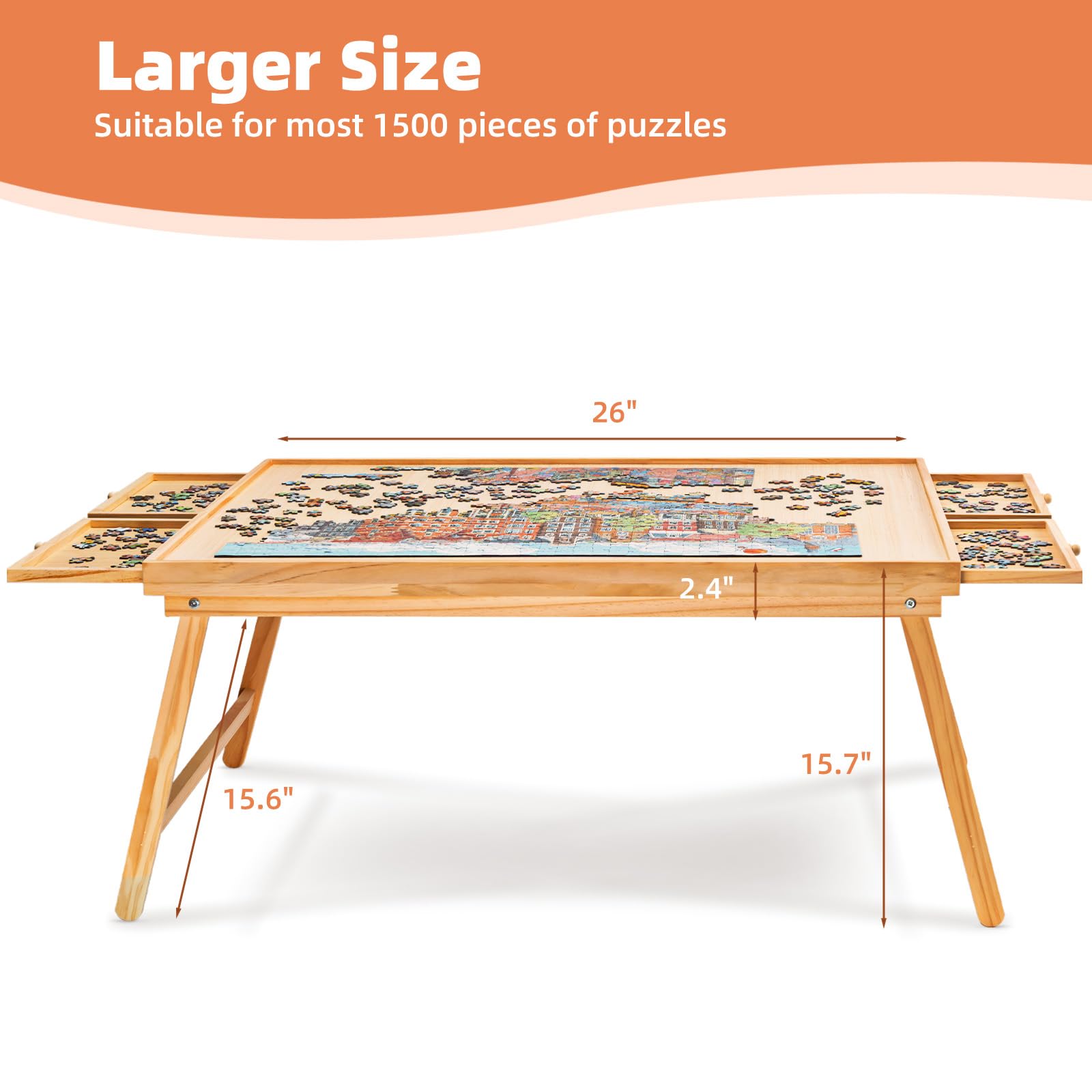 - u3010Larger Sizeu3011Provides a working space of 26"x34", suitable for most 1500 pieces of puzzles, 1000 pieces puzzle also available.