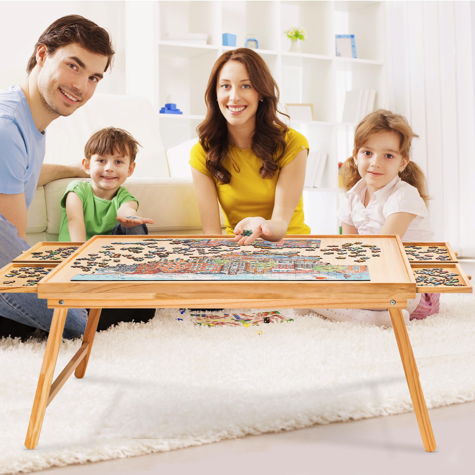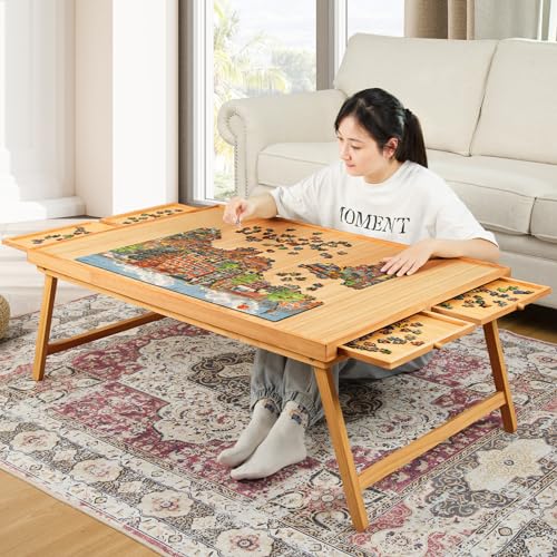 - u3010Multipurpose Useu3011Puzzle board with folding legs allows you to use it in multiple scenarios, you can use a jigsaw puzzle board on the living room, study, bed, or any flat surface.Organize puzzles, work, or do small handicrafts on it. Puzzle table is made of pure wood, combines aesthetics and practicality, more high-end and come pre-fixed.