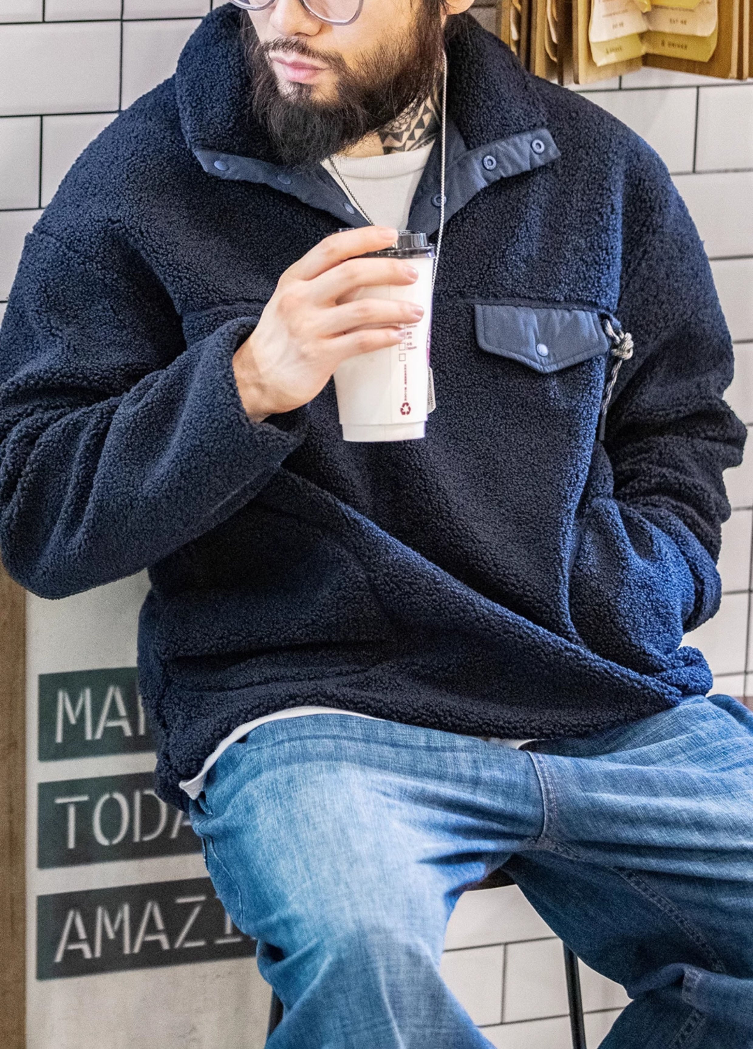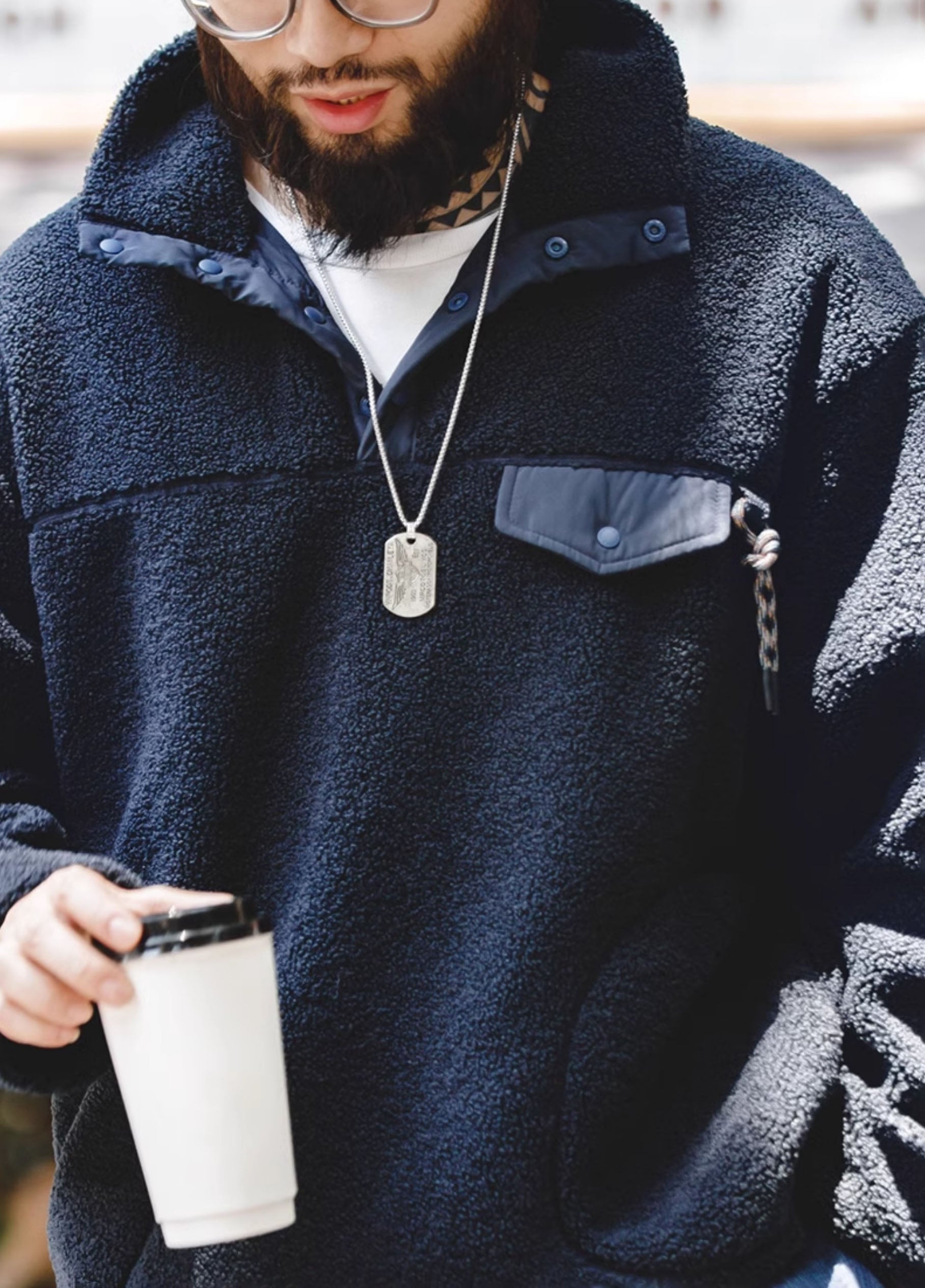 American Casual Half-Cardigan Fleece Pullover Warm Men's Sweater