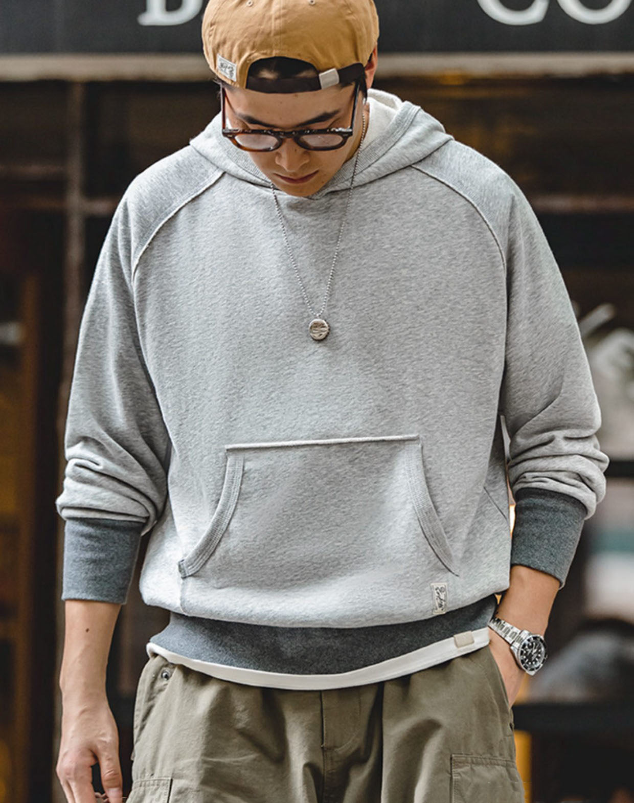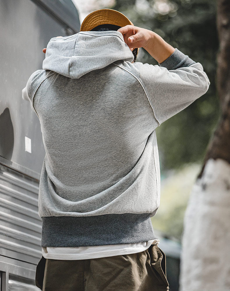 American Casual Hooded Gray Contrast Color Pullover Men's Sweater
