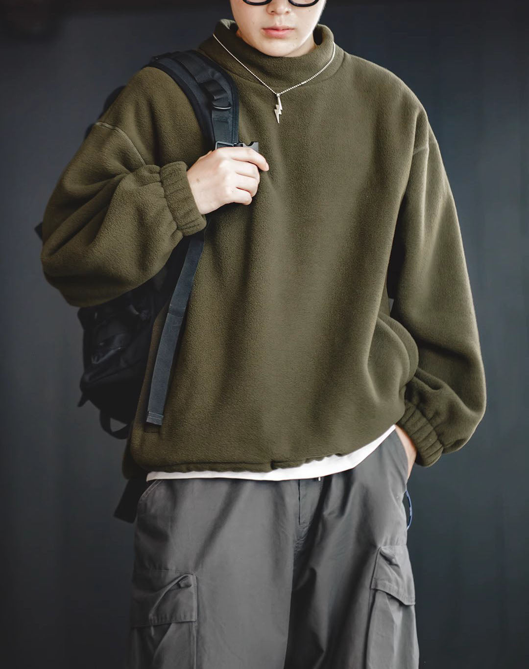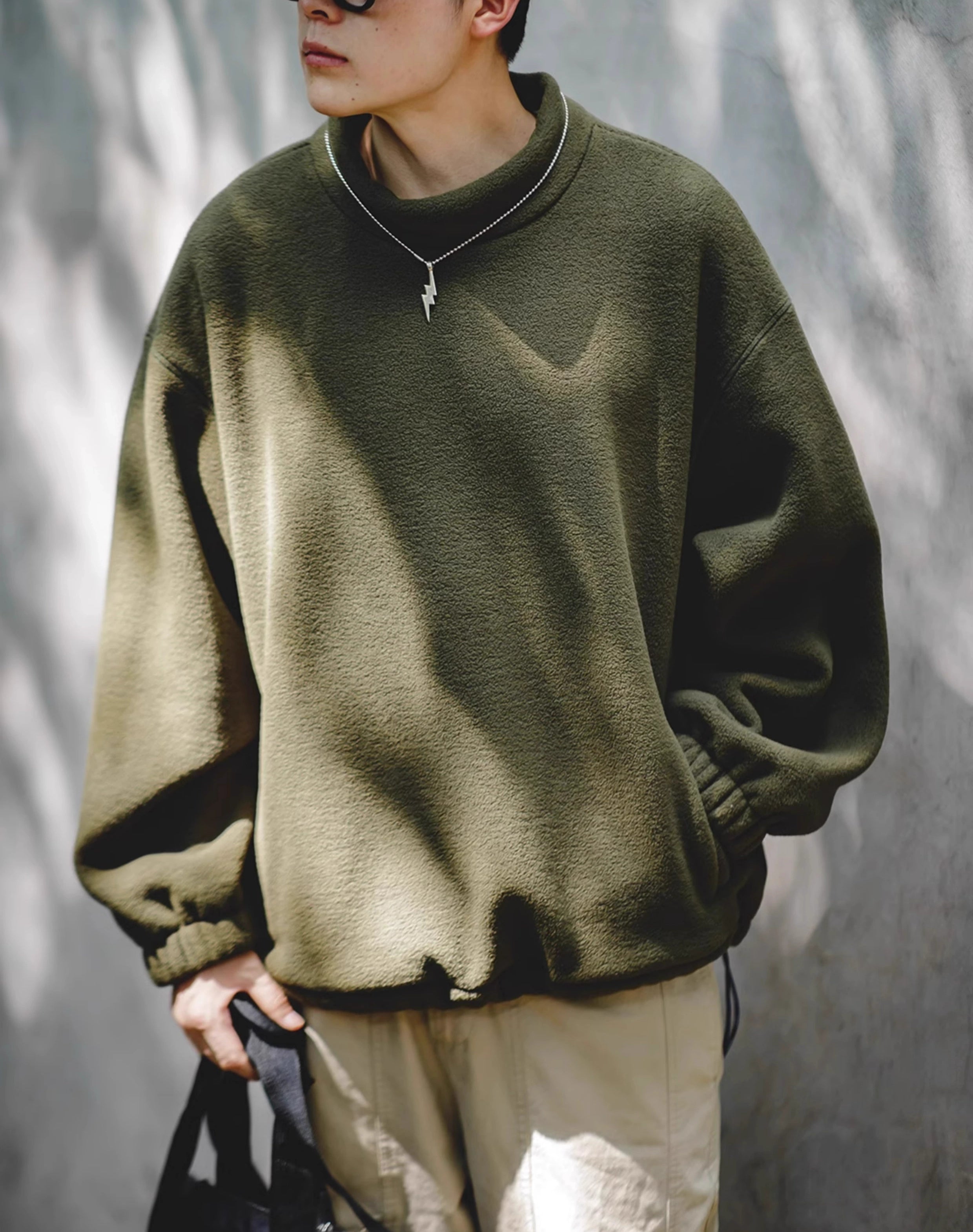 American Casual Polar Fleece Loose Lazy Pullover Men's Sweater