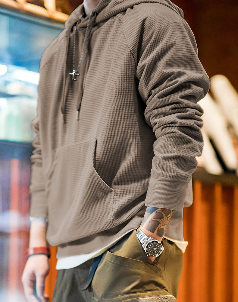 Get ready to elevate your casual style with the American Corn Grain Embroidery Hooded Velvet Pullover Men's Sweater. This trendy sweater not only adds a touch of sophistication to your look but also keeps you comfortable throughout the seasons.
