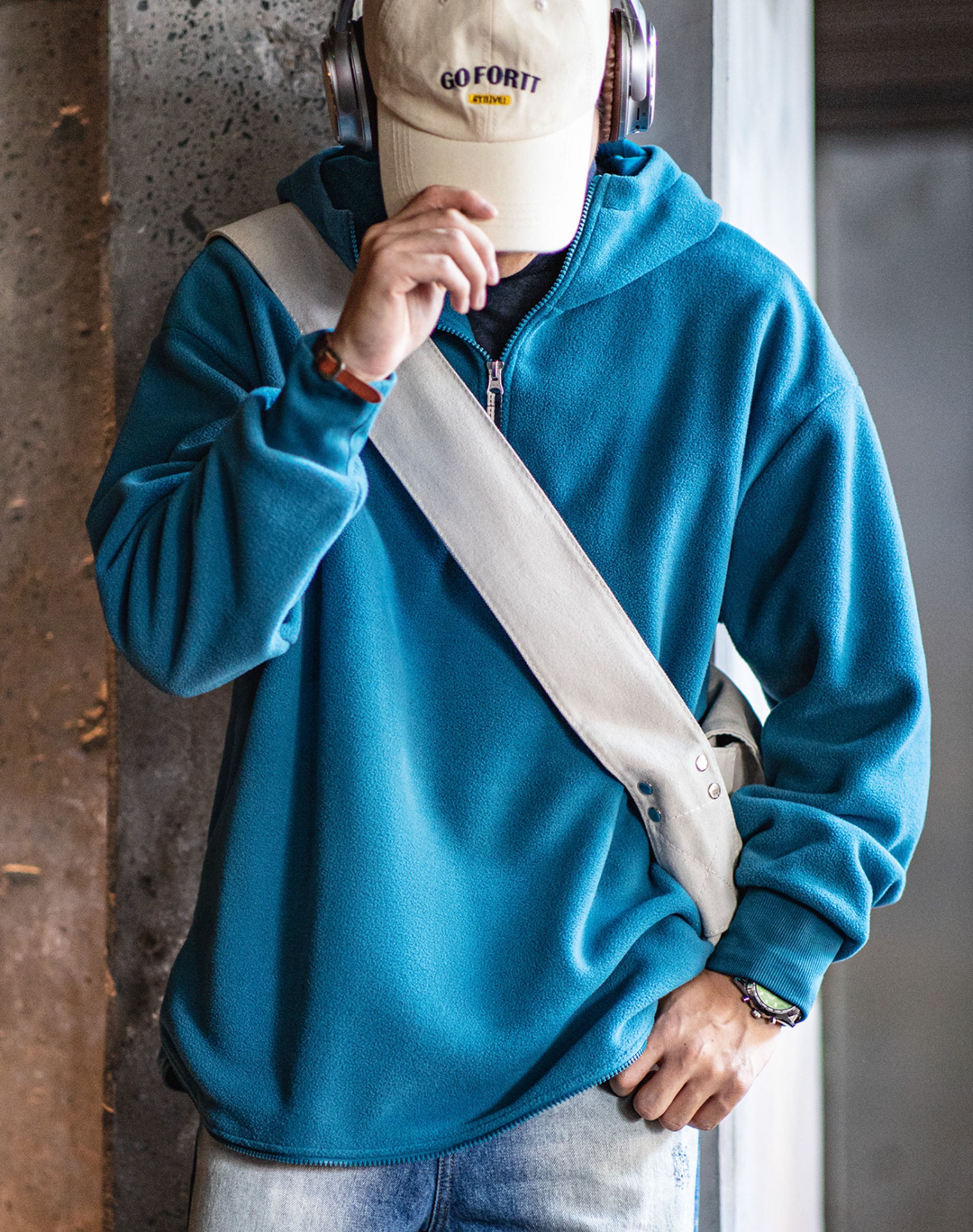 Introducing the American Double-Sided Polar Fleece Half-Zip Velvet Men's Sweater – your ultimate go-to for casual comfort in any season!