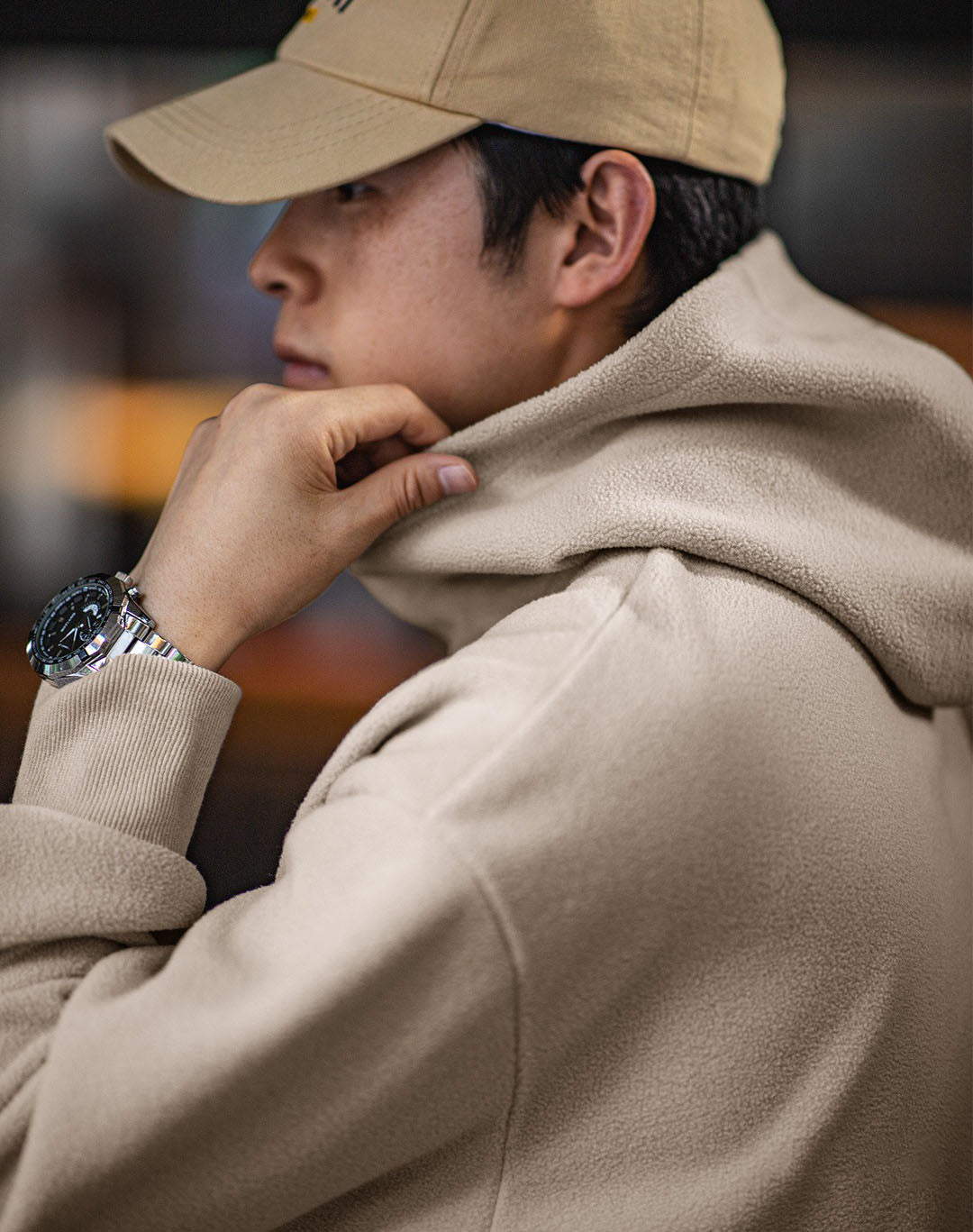 Say goodbye to chilly days with this cozy hoodie that comes in Lake Blue and Light Khaki, ensuring you stay stylish and warm. Whether it's spring, fall, or winter, this sweater has got your back.