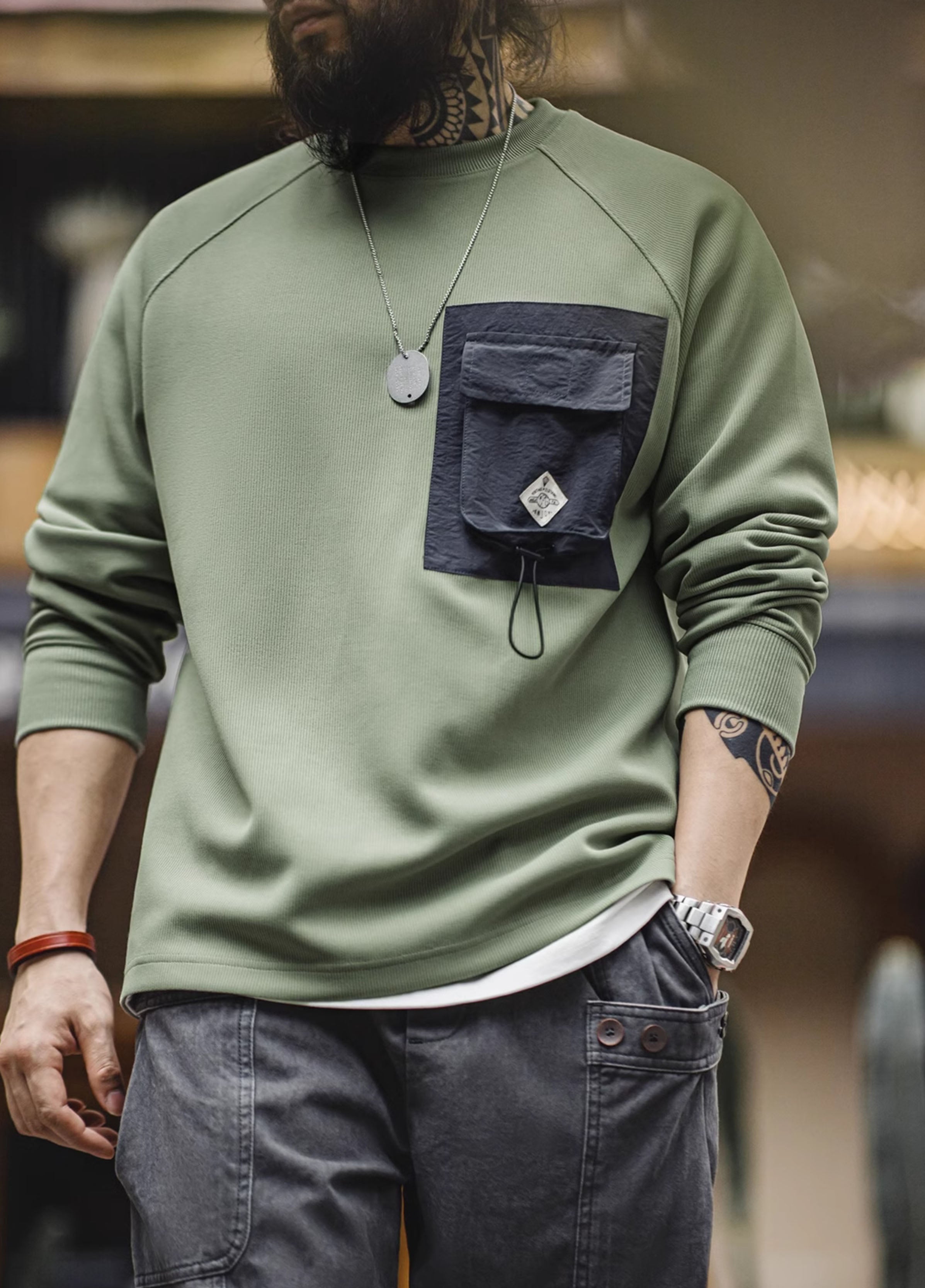 Get ready to upgrade your wardrobe with the American Mountain Contrast Color Pocket Functional Knitted Men's Sweater – your new go-to for casual style and comfort.