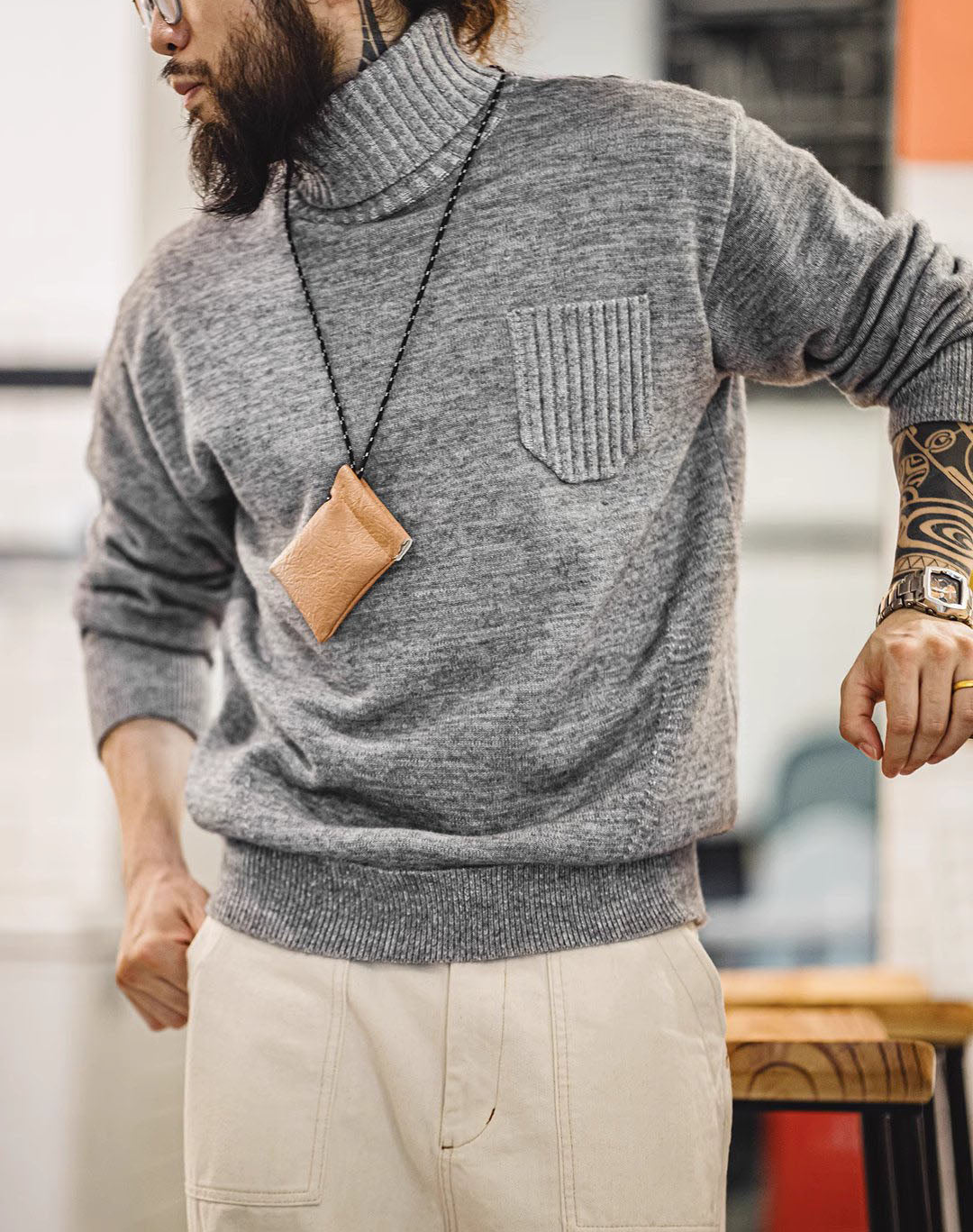 American Retro Blended Turtleneck Pullover Warm Knitted Men's Sweater
