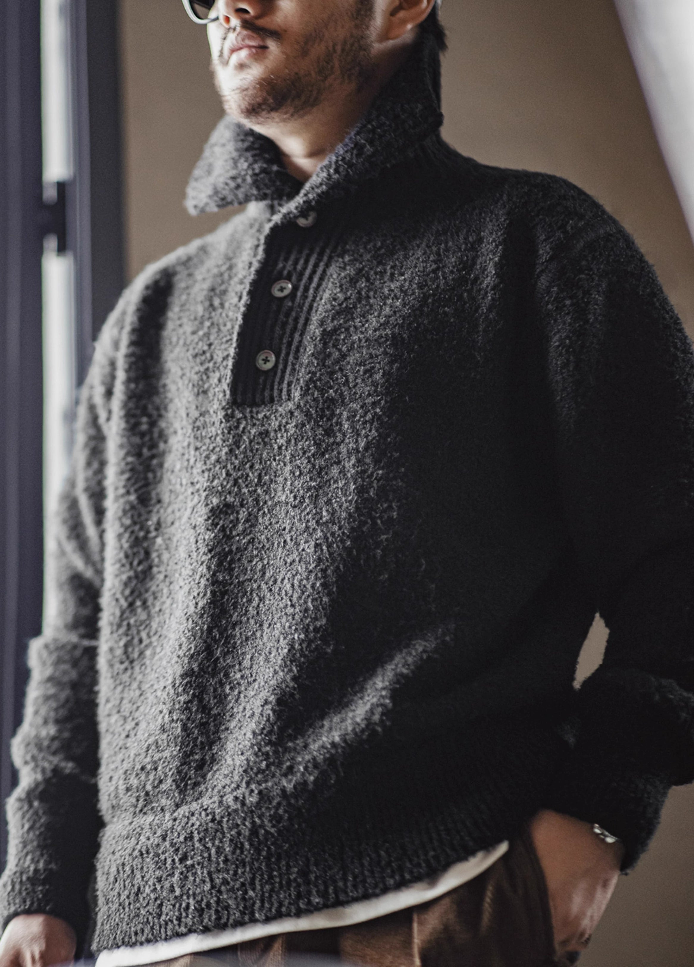 American Retro Circle Yarn Polo Warm Pullover Thick Men's Sweater