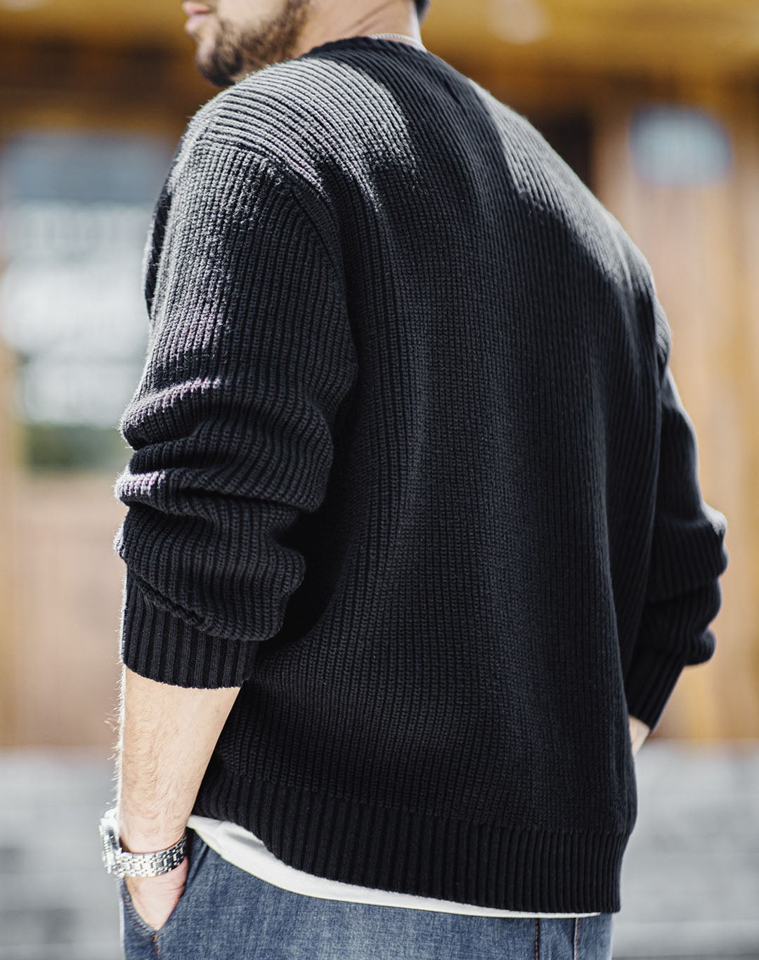 Elevate your style game with our American Retro Knitted Henry Vertical Striped Pullover Men's Sweater. This sweater isn't just about looking good; it's your key to ultimate comfort and effortless fashion.