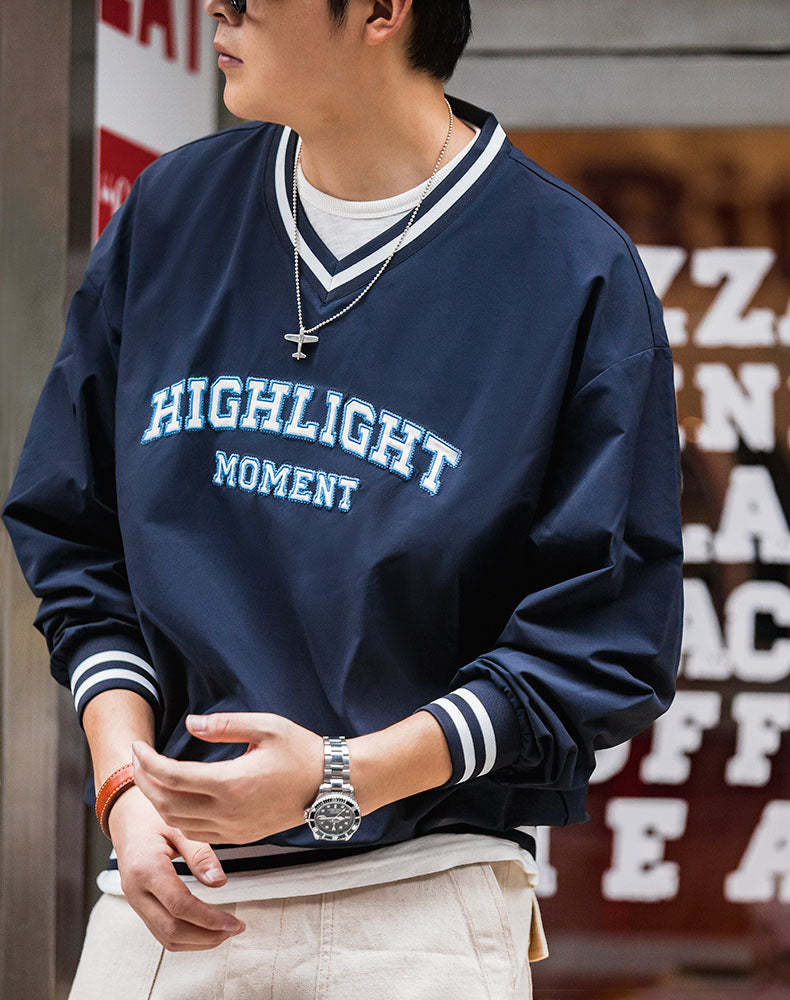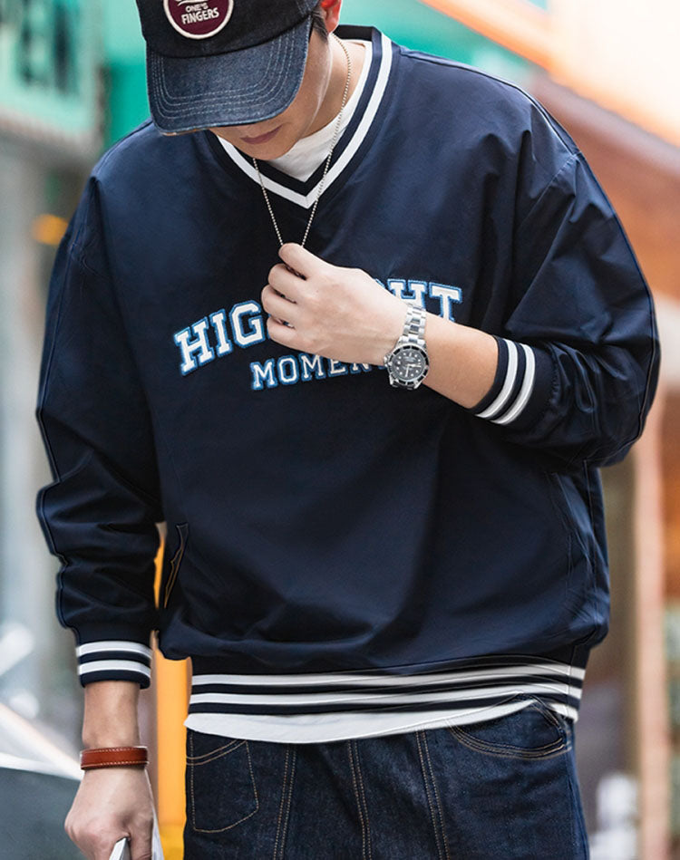 American Retro Letter Embroidery Baseball Men's Sweater