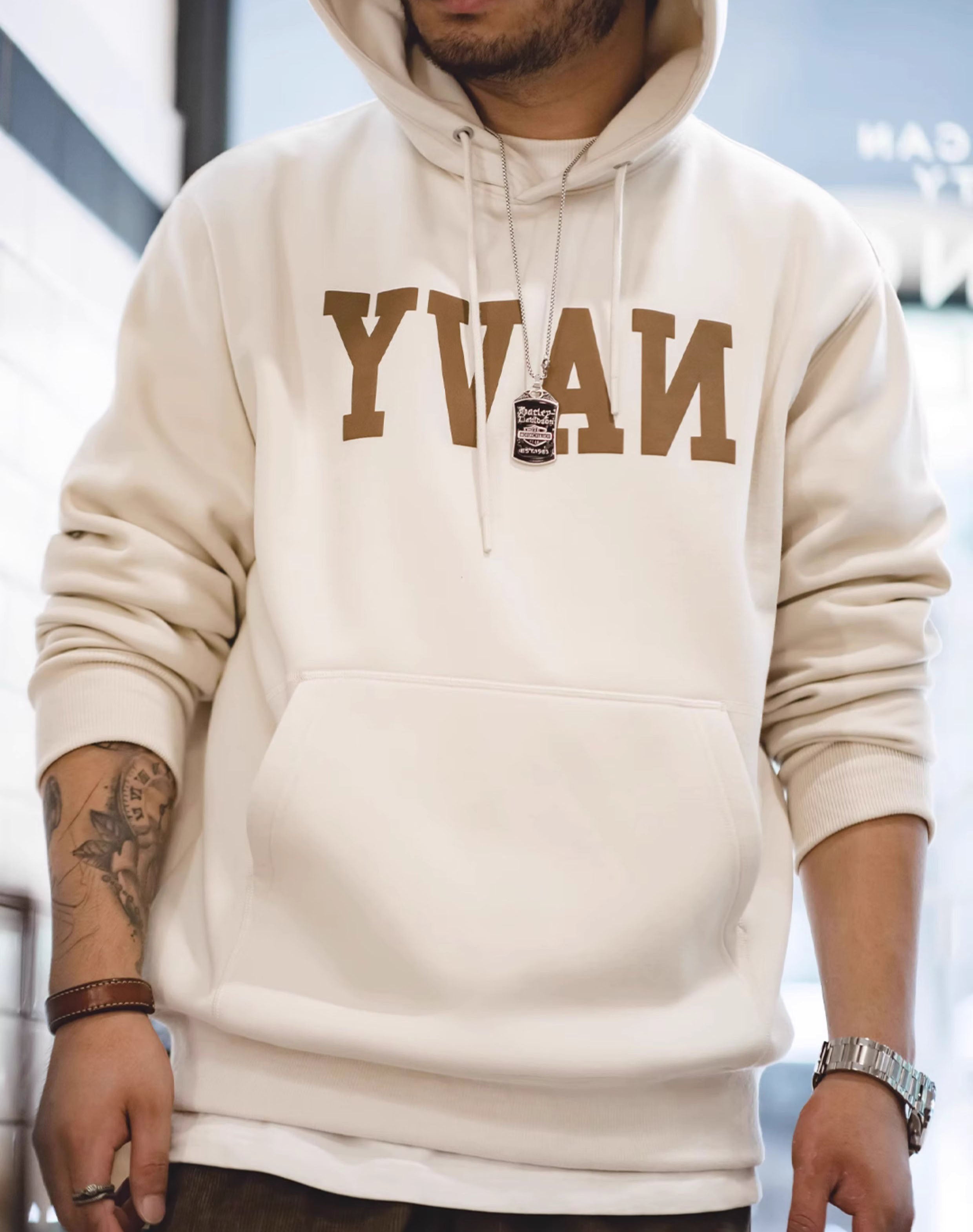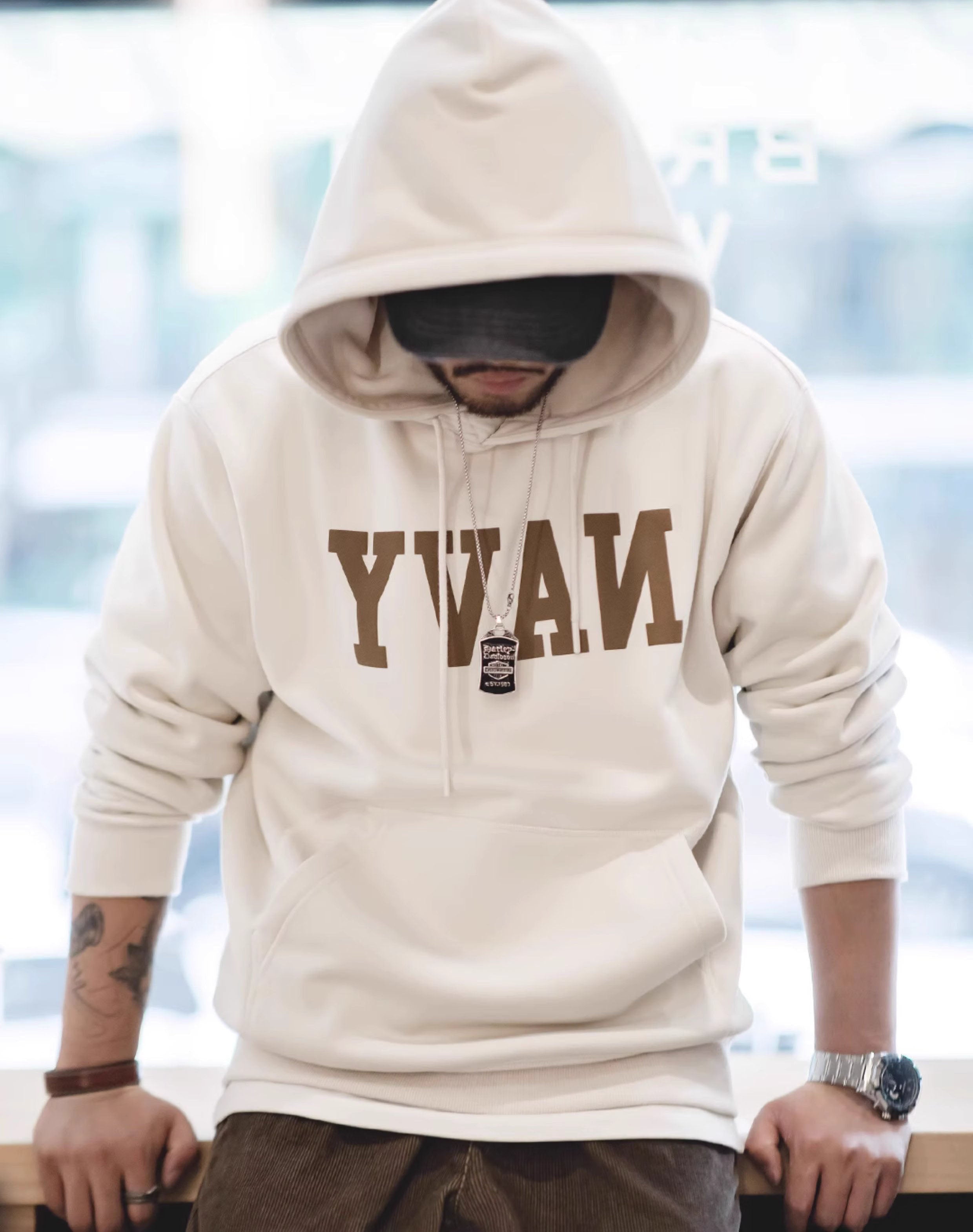 American Retro Mirror Fleece Letter Printed Pullover Men's Sweater