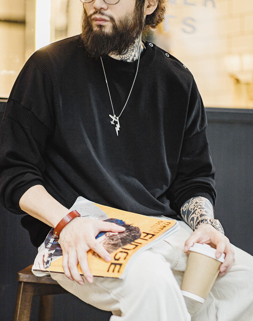 No patterns, no fuss – just a straight, plain black sweater that oozes style and charisma. And the best part? It stays loyal. No getting out of shape, thanks to that straight clothing version. You can trust it to have your back, always.