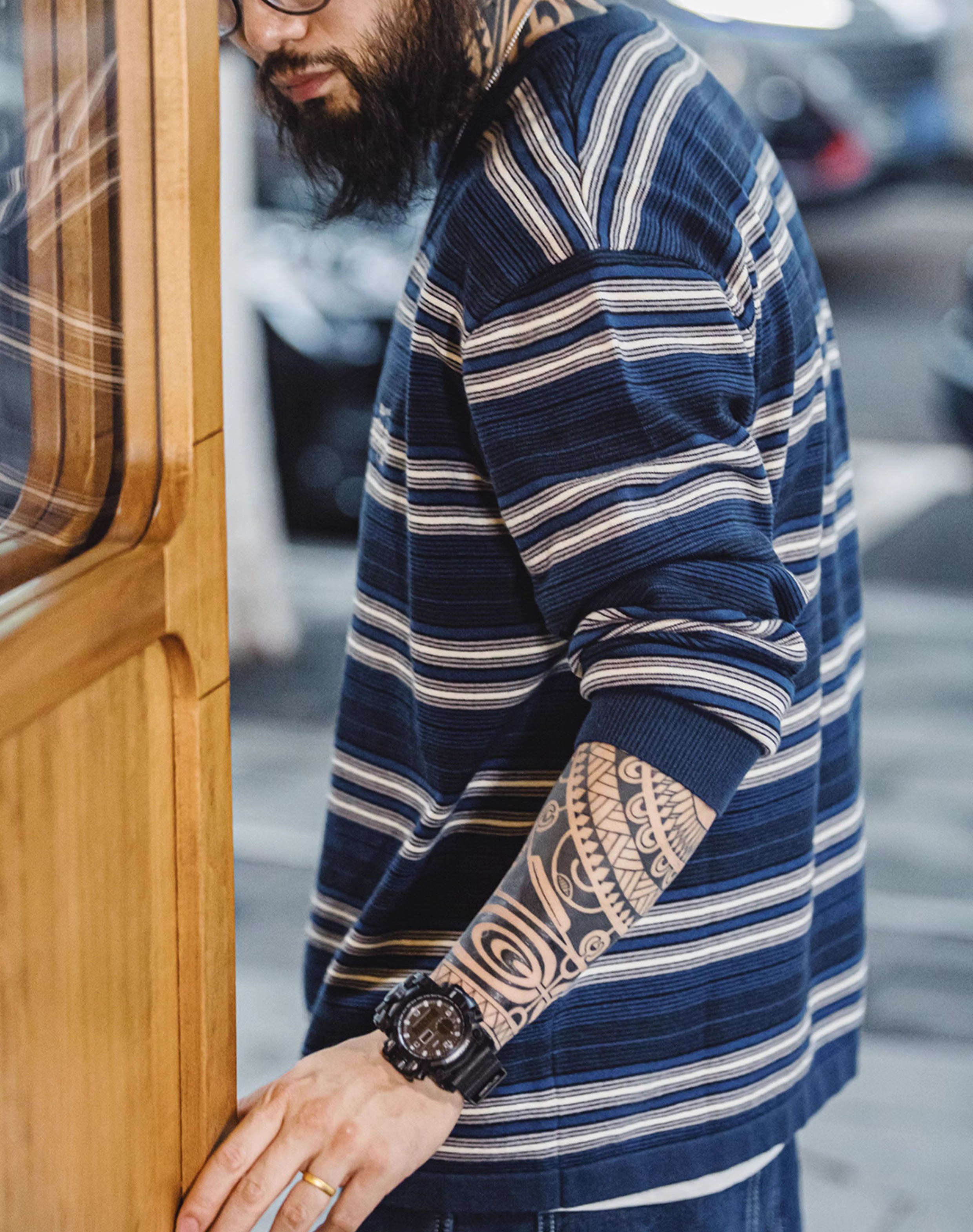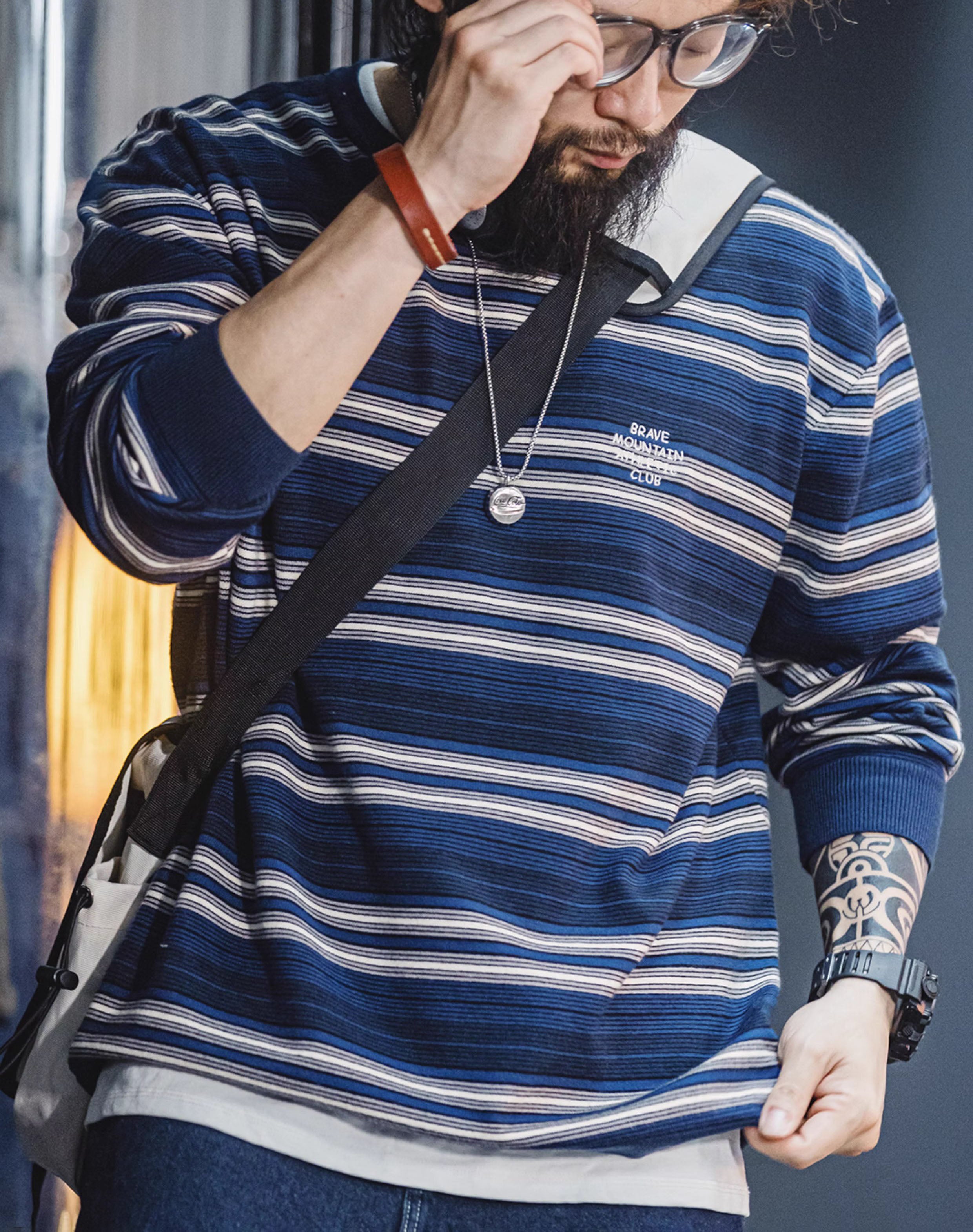 Alright, trendsetter, this one's for you! If you're tired of the same old, same old, it's time to jazz things up with the American Striped City Boy Blended Off-Shoulder Men's Sweater. No more playing it safe – embrace the stripes and let's make fashion fun again!