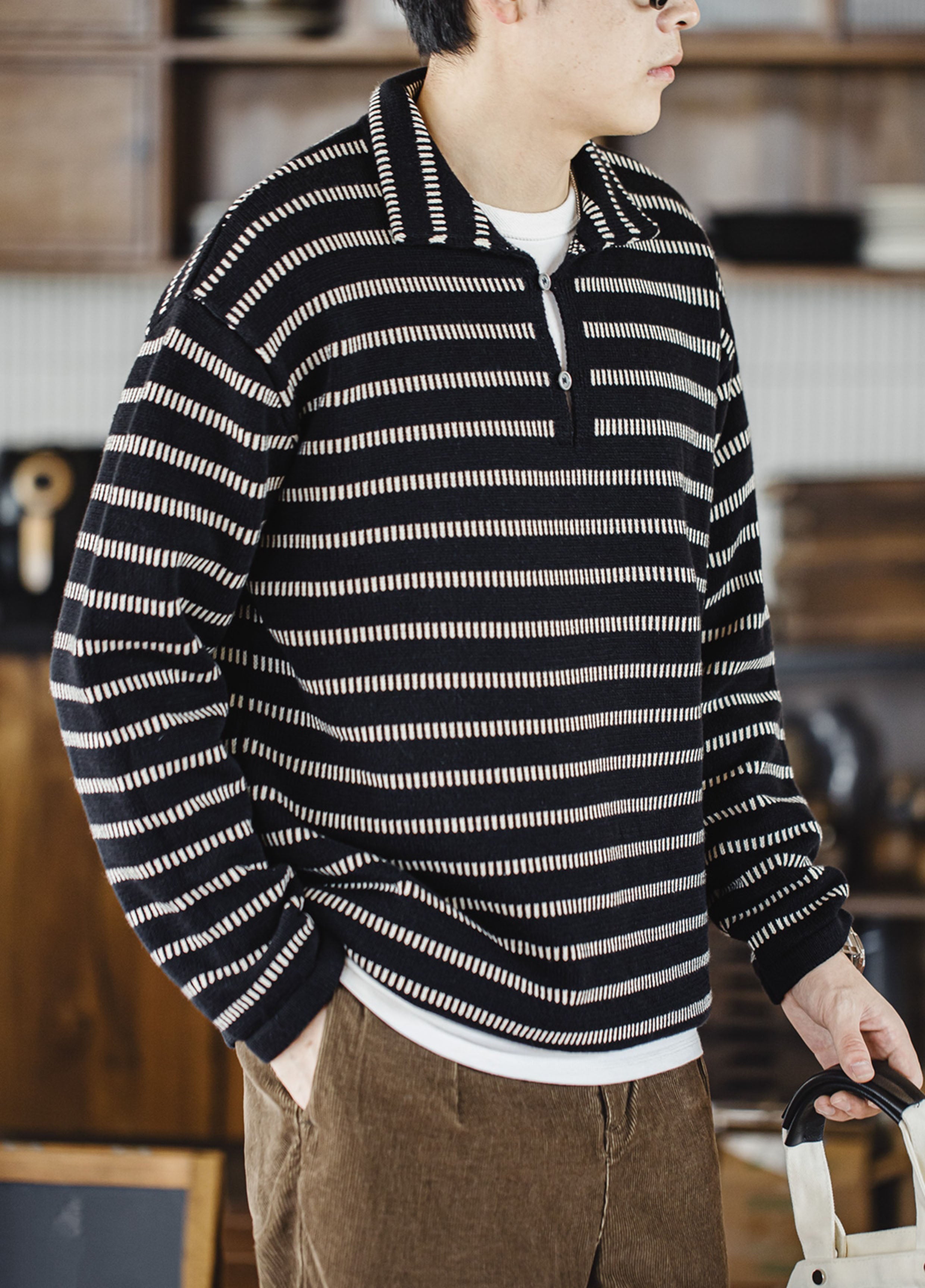 👕 Style: Casual 🎨 Pattern: Stripes 🖤 Color: Black Stripes 📏 Sizes: S M L XL 2XL 👔 Collar: Lapel 💪 Sleeve Type: Dropped Sleeves 🧥 Sleeve Length: Long Sleeve 🍁 Season: Fall/Winter 👌 Clothing Version Type: Straight 🌾 Fabric Material: 62% Cotton, Polyester Fiber