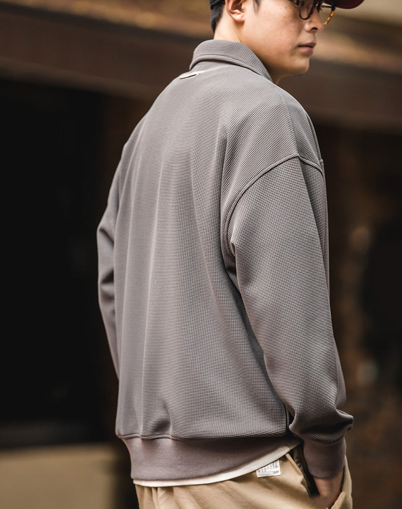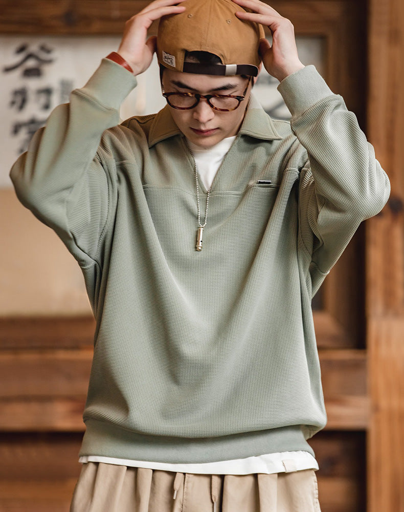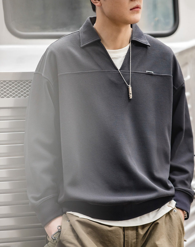 American Waffle V-Neck Polo Loose Pullover Men's Sweater
