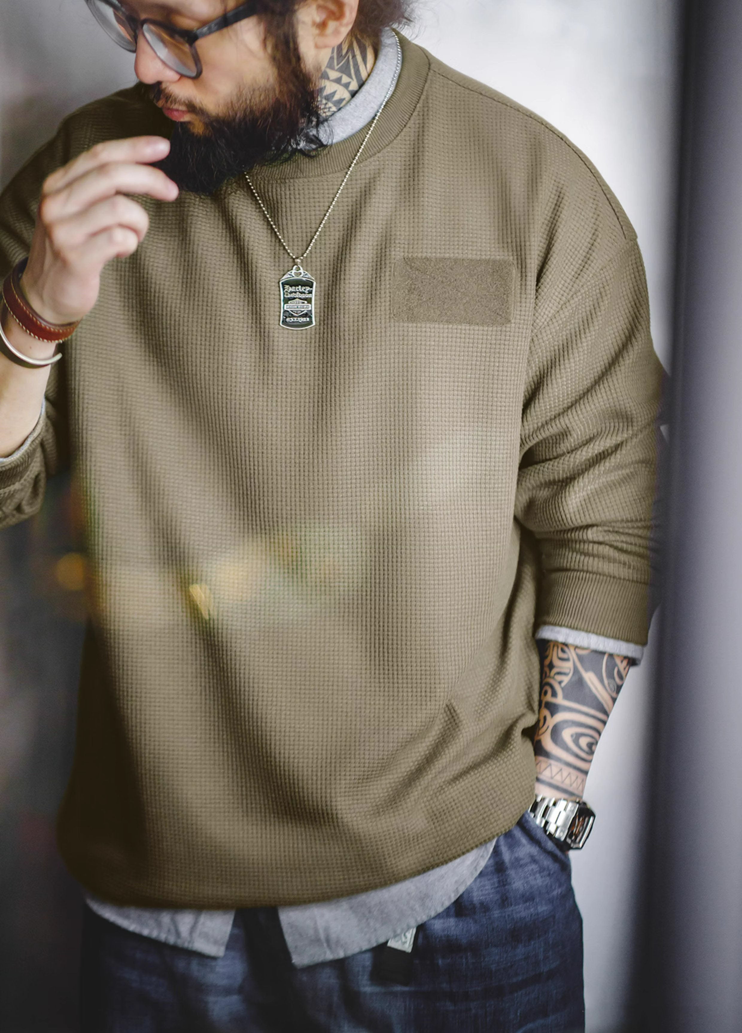 American Workwear Waffle Velcro Drop Shoulder Men's Sweater