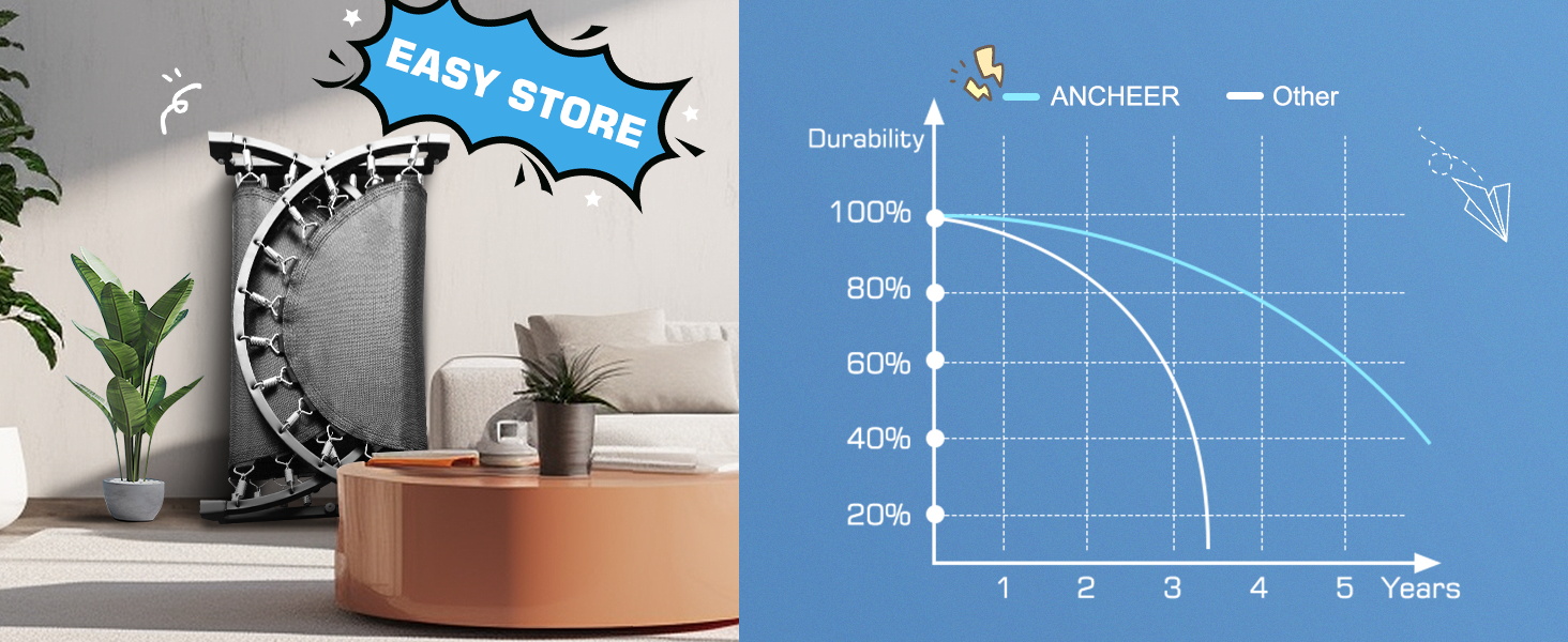 - u2705EXCEPTIONAL CUSTOMER SERVICE - Every ANCHEERu2018s trampoline indoor is also backed by our 24/7 customer service and support as well as a reliable warranty. Please contact us with any questions or read the included manual for more information.