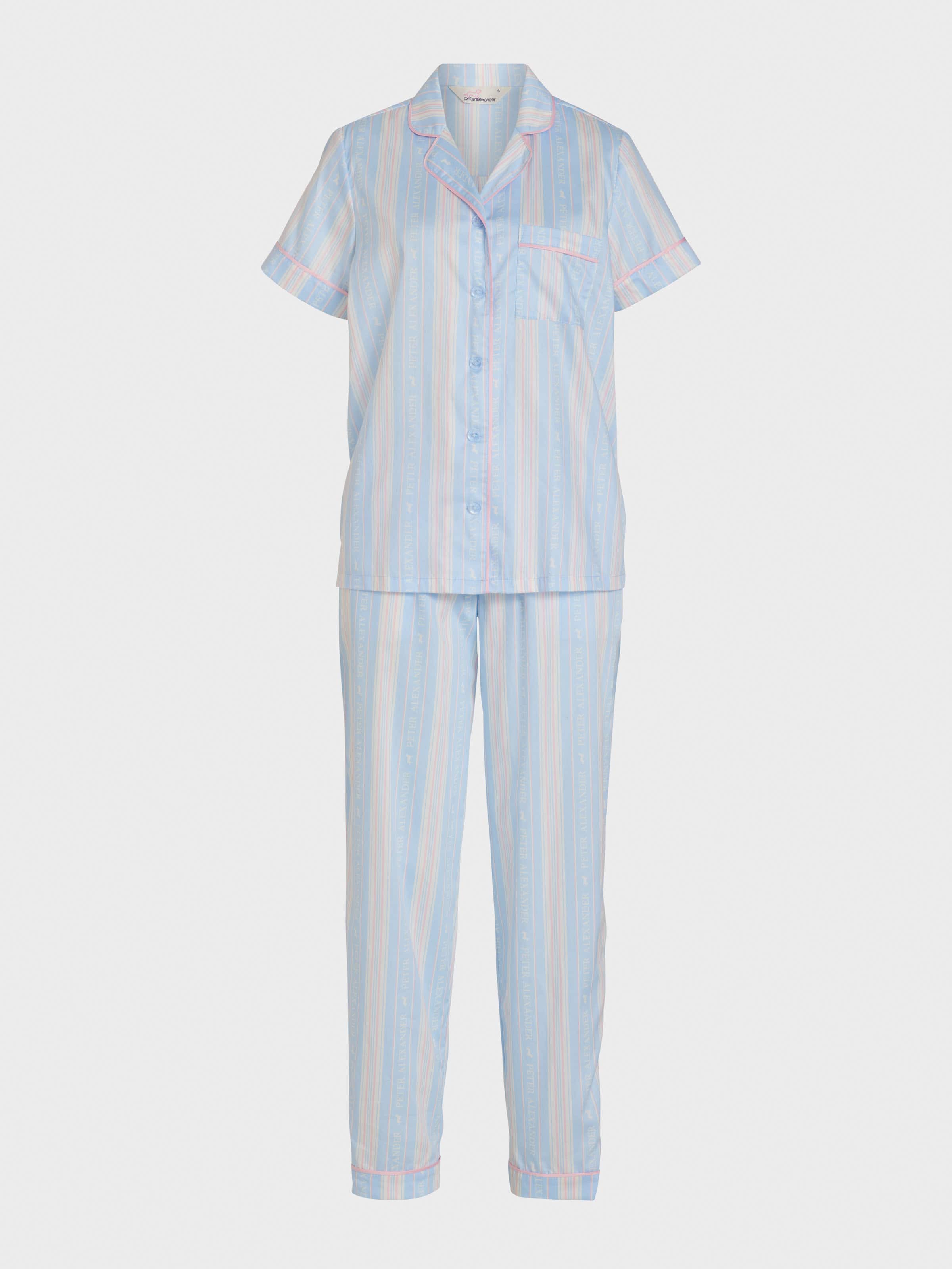 Classic stripes on soft cotton make for perfect summer PJs. This set features a short-sleeved shirt, long pants and a matching eye mask, all perfectly packaged in a gift box and ready to wrap!
