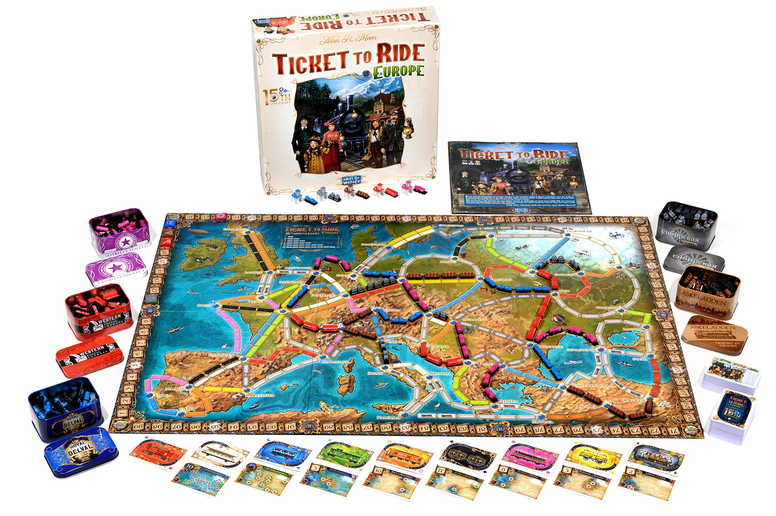 - CELEBRATE 15 YEARS OF TICKET TO RIDE: From beneath the shadow of London's Big Ben to the towering arches of Rome's Colosseum, from the brilliant onion domes of Moscow to the delicate Eiffel Tower in Paris, Ticket to Ride Europe takes you on new train adventures through the great cities of turn-of-the-century Europe.