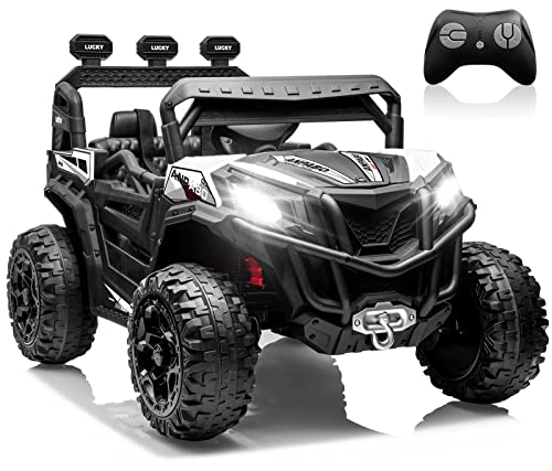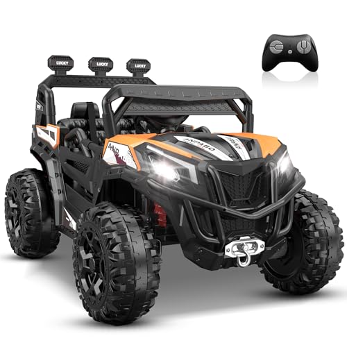 - SAFE DRIVING WITHOUT WORRY: The remote control can override the manual mode, just press the P button to activate emergency braking when there is any potential danger; 4 anti-skid wheels with spring suspensions ensure smooth driving; the key-start and the soft start design, the lockable doors on both sides, all ensure driving safety and protecting children in all aspects