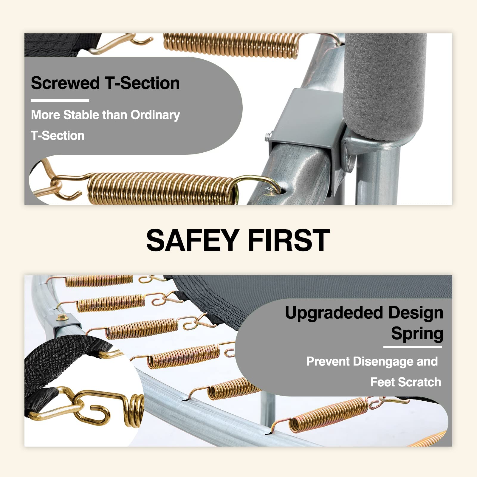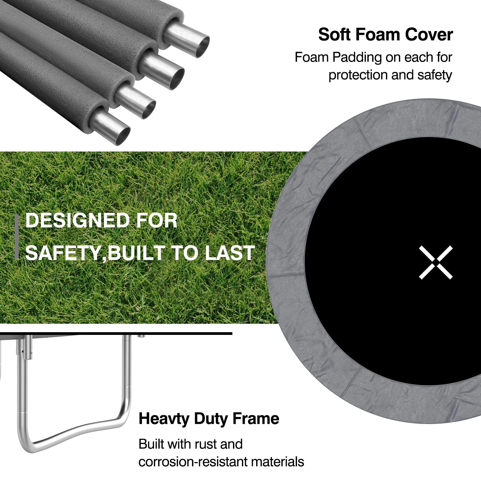 - Stronger Frame: The frame is galvanized inside-out, and the legs are powder coated for extra protection against rust. The max capacity is 600 lbs. Come with the ladder allows for easier entry and exit from your trampoline. Soft and durabel mat provides a soft and absorbed landing.