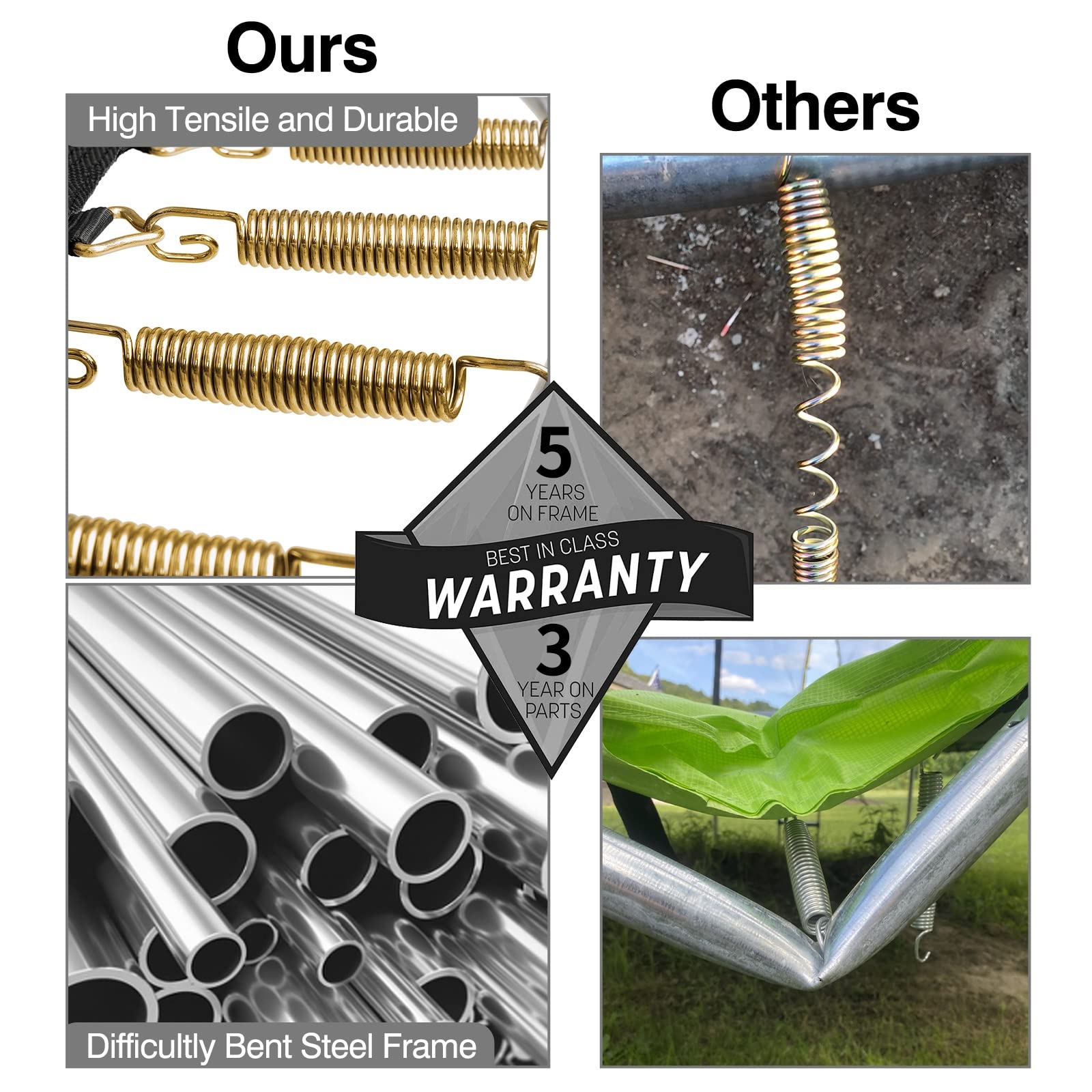 - A+ Service: AOTOB provide 5 YEARS warranty on frame, 3 YEARS warranty on other parts. Neednu2019t to worry about replacing your AOTOB trampoline, we made your new exercise trampoline ideal for outside use!