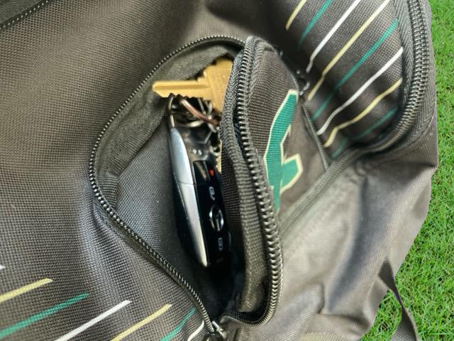 - Two zippered front pouches