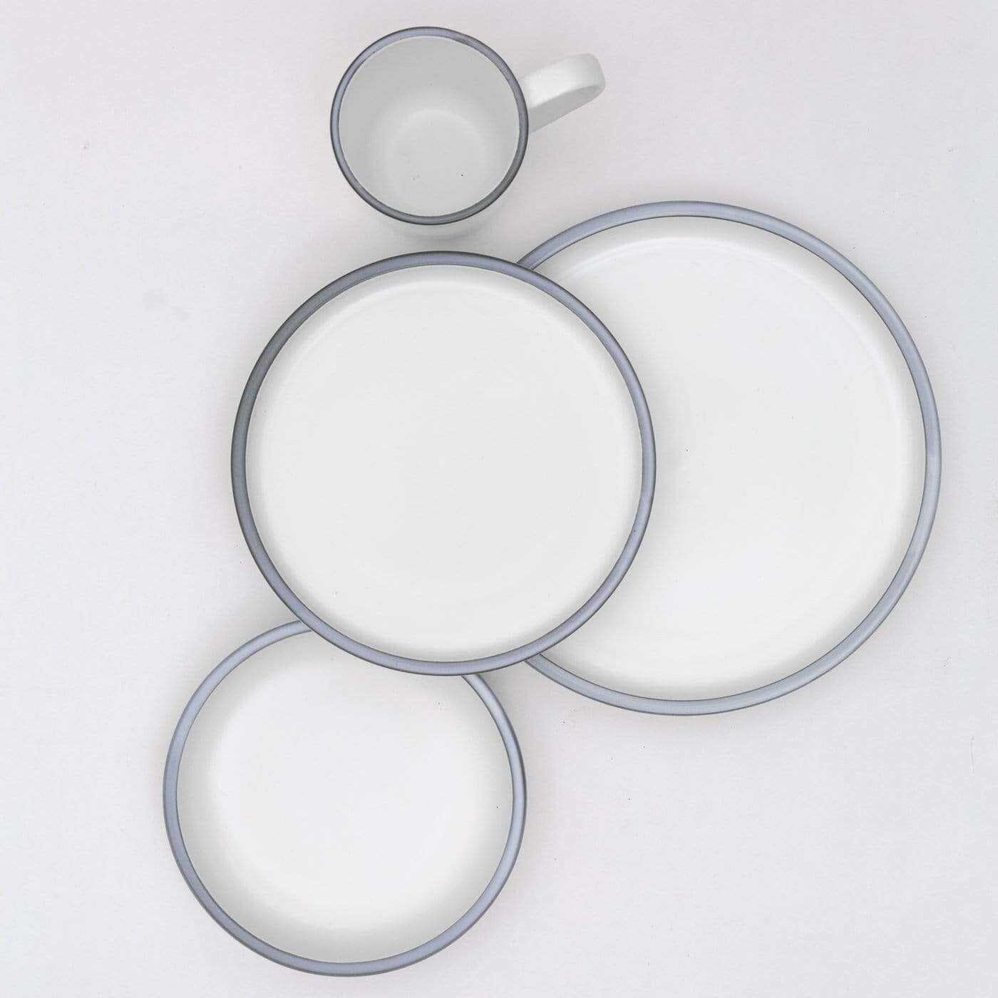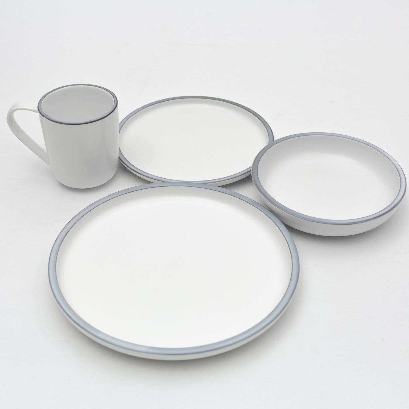 The Apatite Dinnerware Set is a mix of modern design and exceptional quality with a matte silver border, elevating every look for those special occasions in your home!