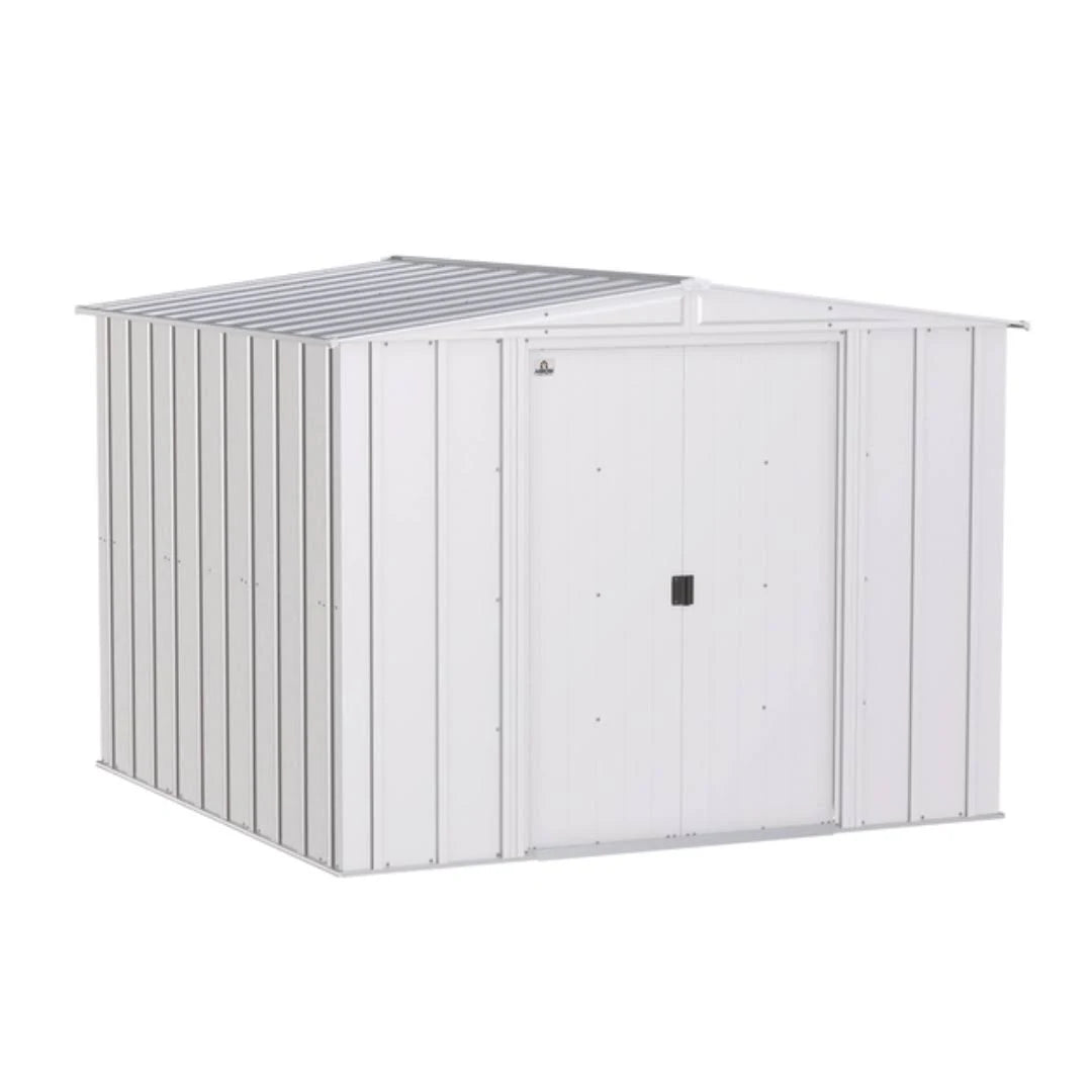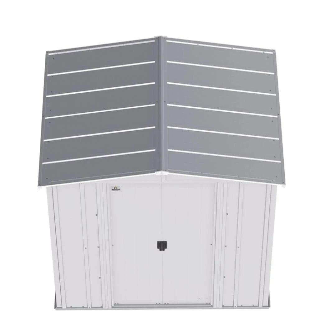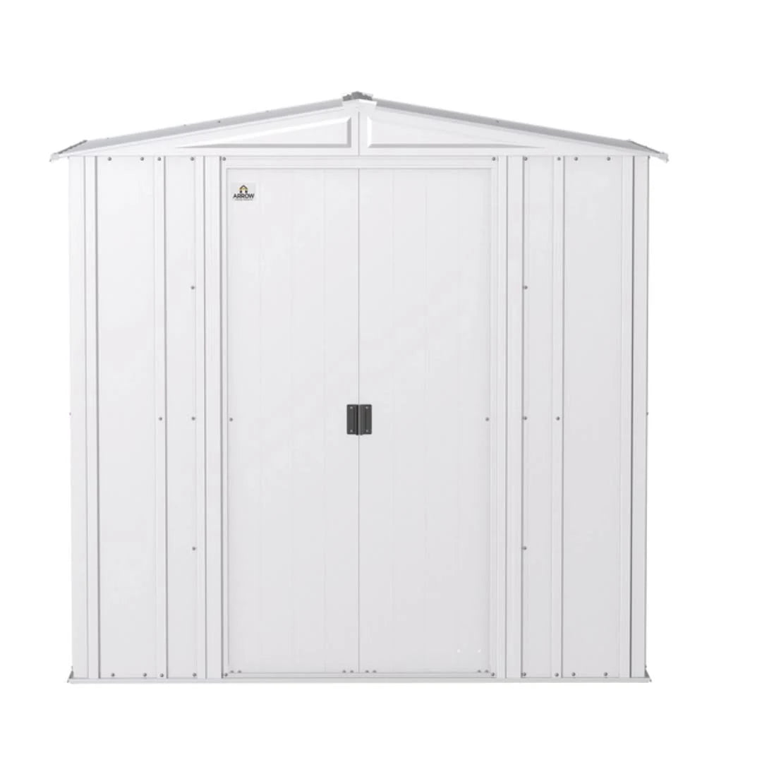 Are you looking for a practical, sturdy storage unit for your backyard? The Arrow Classic Series Steel Storage Shed is engineered to protect your landscaping equipment, tools, and gardening supplies, and keep them safe from the elements. The shed is made of galvanized steel thats treated to prevent rust and corrosion. It has a low gable roof thats designed to prevent water from pooling. The pad lockable sliding doors sit on large glides that prevent sticking and derailing. The Arrow Classic is a good-looking unit, too! The sheds timeless vertical wall panels are finished with a smooth, hard-wearing Valspar polyester paint finish protects against the elements and seals the steel against rust and corrosion. The 65-inch walls provide easy access to stored items from lawn mowers to garden tools. It is manufactured in the USA with globally sourced material.