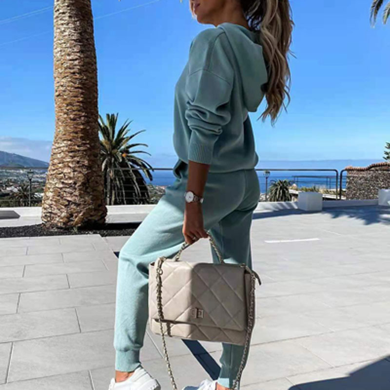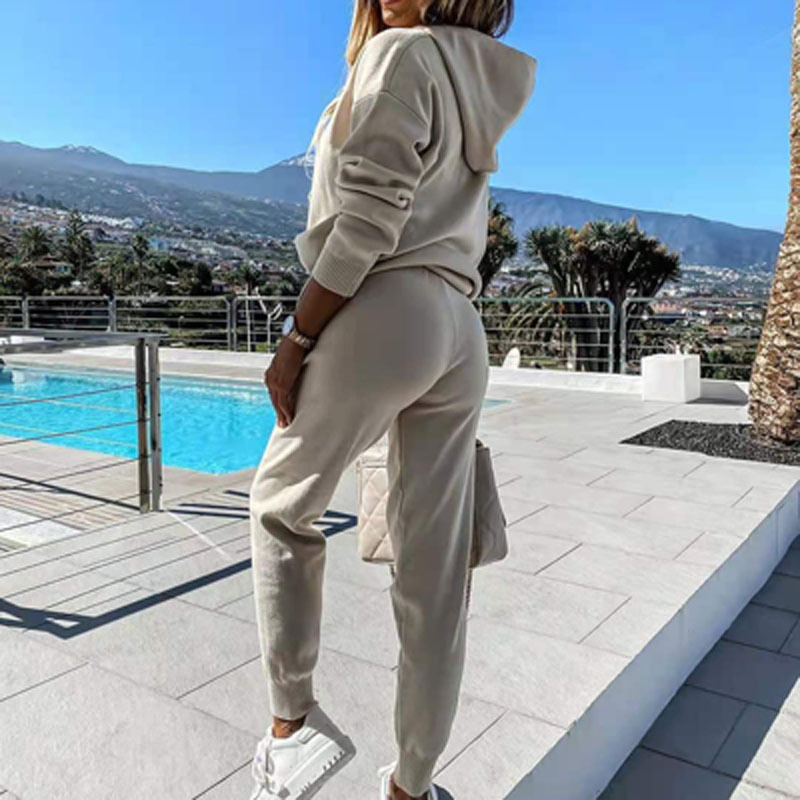 • Autumn and winter plus fleece hooded loose sweater two-piece suit